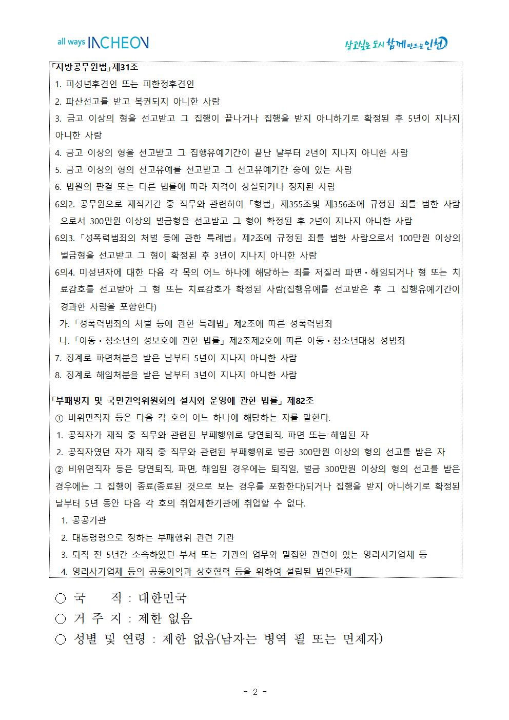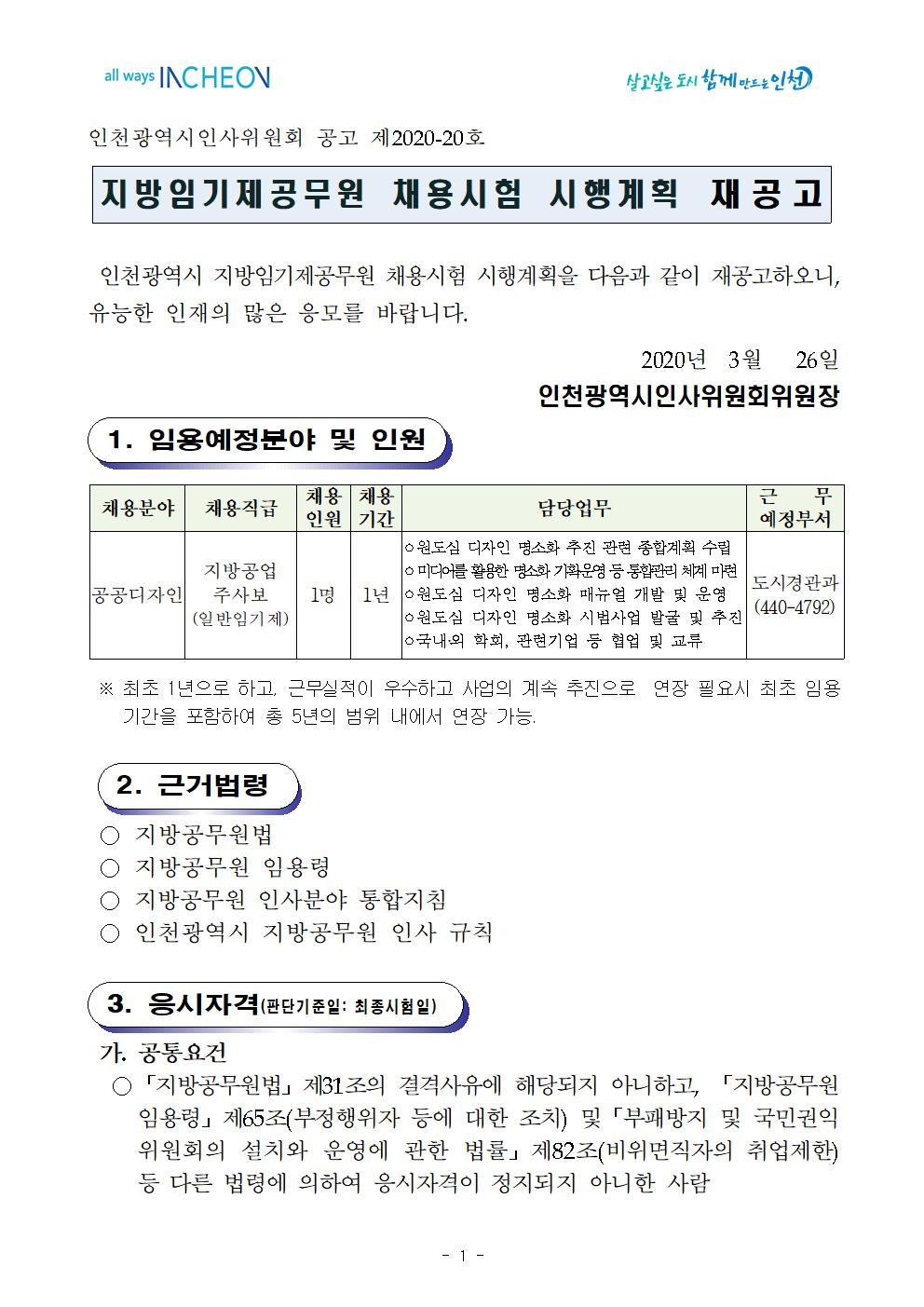인천광역시 지방임기제 공무원 채용시험(공공디자인 분야) 안내