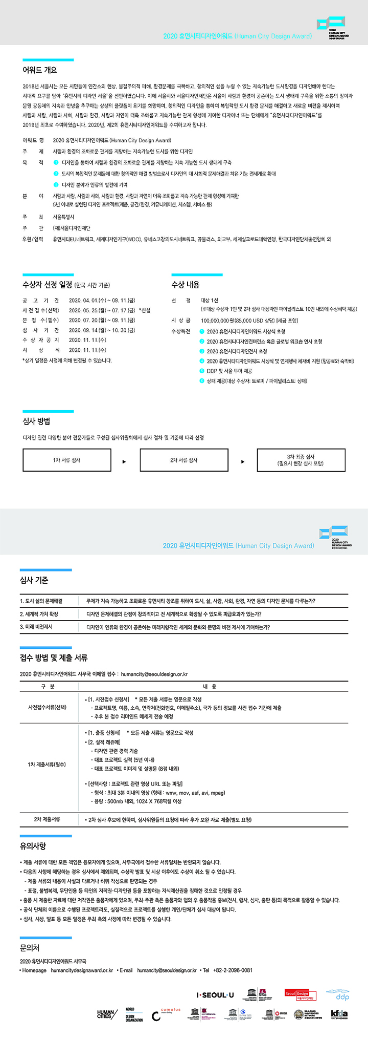 2020 휴먼시티 디자인 어워드 디자인 공모 안내(첨부)