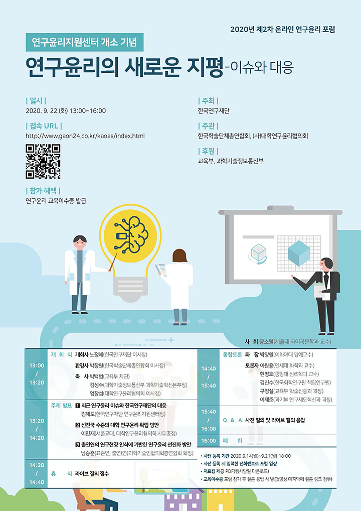 한국연구재단 2020년 제2차 연구윤리포럼 행사 안내