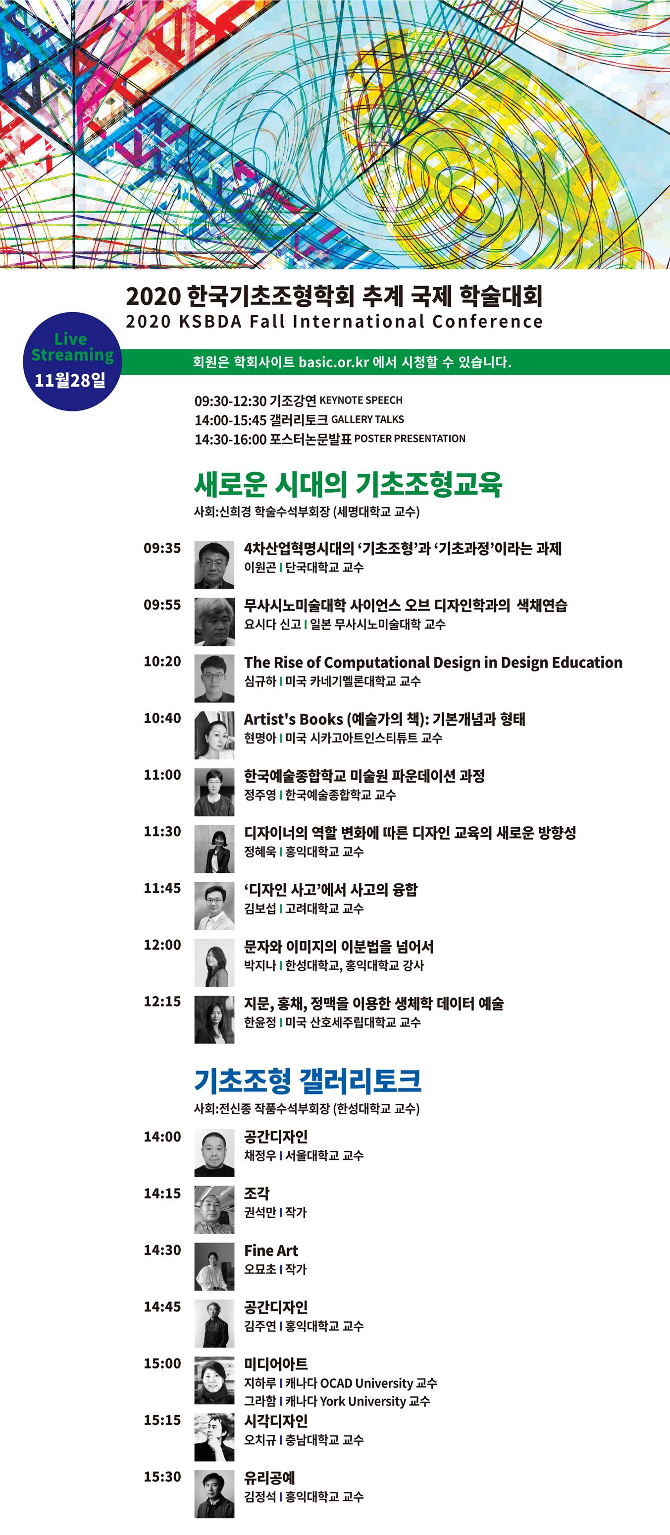 2020 한국기초조형학회 추계 국제 학술대회 프로그램표