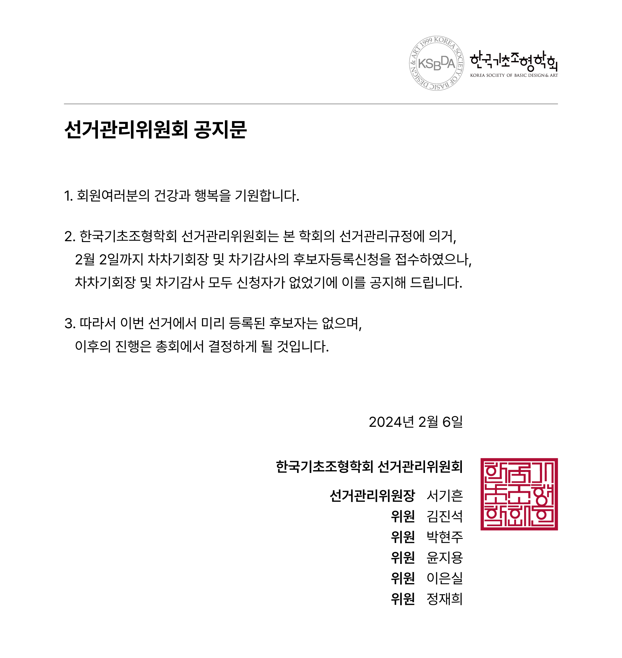 선거관리위원회 공지문