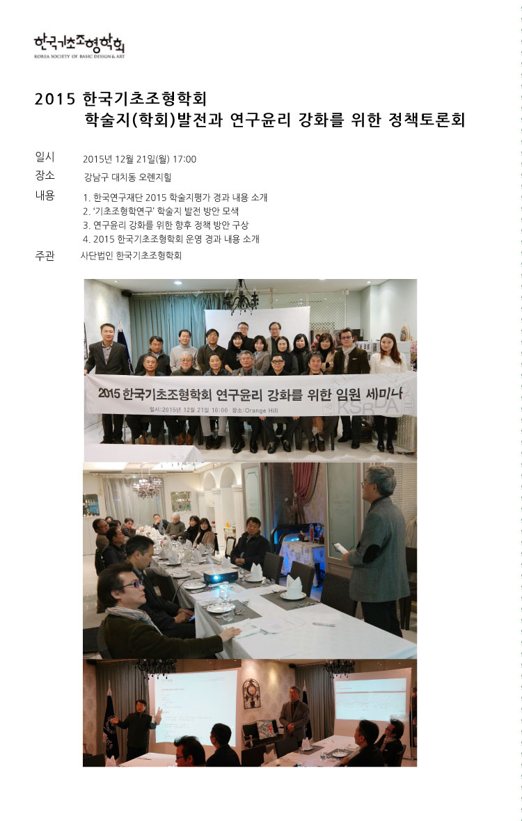 2015 한국기초조형학회 학술지(학회)발전과 연구윤리 강화를 정책토론회 결과공지
