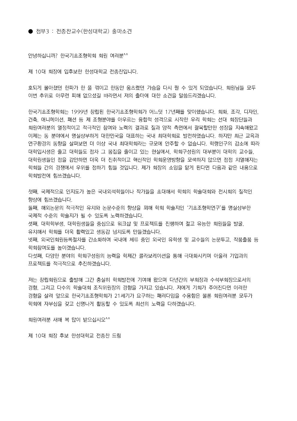 한국기초조형학회 제10대 회장 입후보자 출마소견서 공지