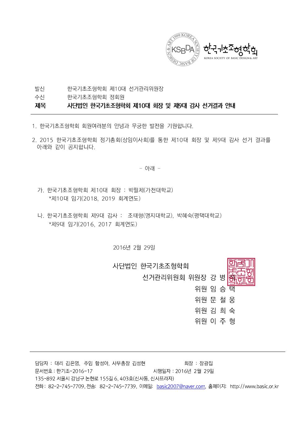 한국기초조형학회 제10대 회장 및 9대 감사 선거 결과 공지