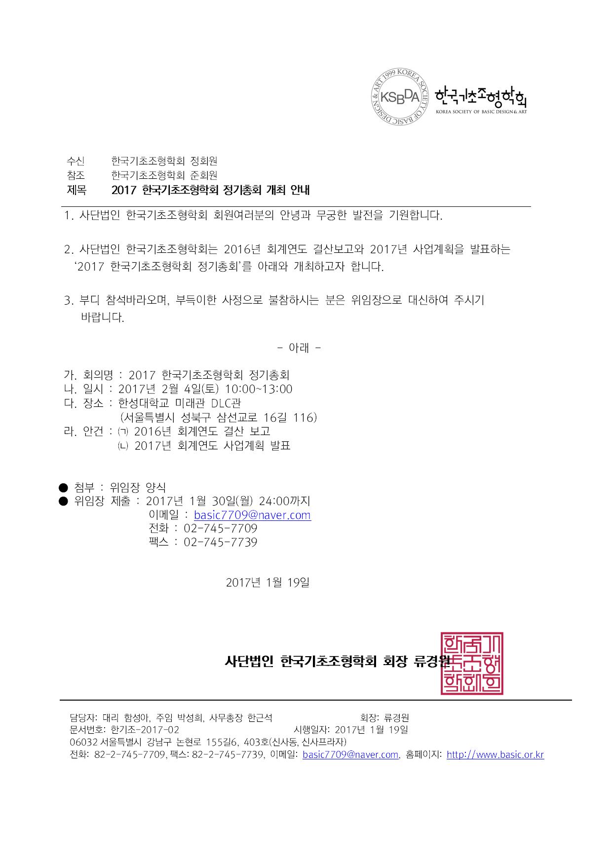 2016 회계연도 한국기초조형학회 정기총회 개최 결과 공지