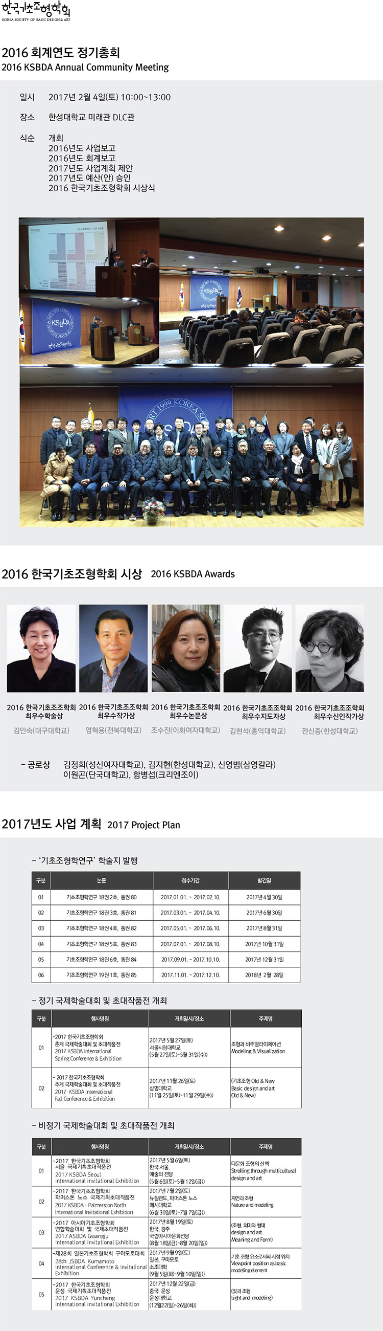 2016 회계연도 한국기초조형학회 정기총회 개최 결과 공지