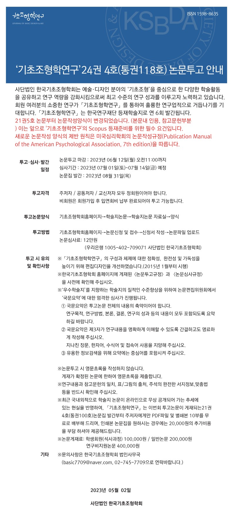 논문투고 마감 | 2023-05-01 ~ 2023-06-12 11:00 |