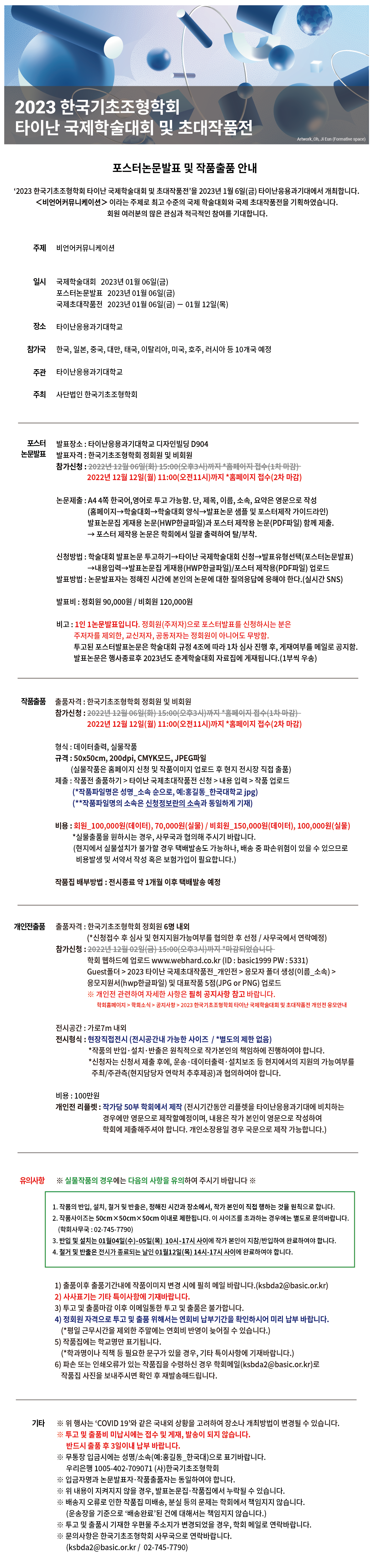 2023 한국기초조형학회 타이난 국제초대작품전(2023.01.06~01.12)