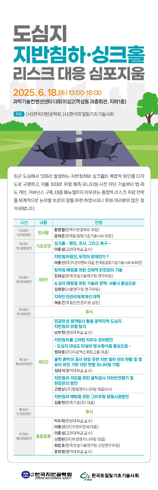 [한국지반공학회-한국토질및기초기술사회] 도심지 지반침하·싱크홀 리스크 대응 심포지움(6/18/수)_요지 포함