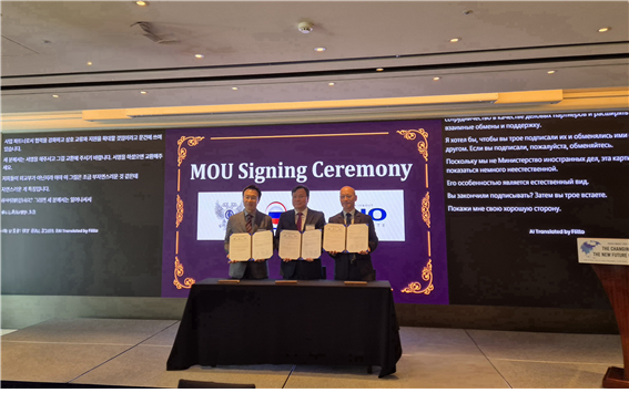 지난 5월 29일 우리 연구소는 개최된 <RIO> 발간 1주년 기념 국제 포럼에서 한러비즈니스협의회(KRBC), RIO 인스티튜트와 3자 MOU를 체결했다. 세 기관의 공동 발전과 우호 증진을 약속하며 러시아 연구소 최우익 소장, 한러비즈니스협의회 박종호 대표, RIO 인스티튜트 이대식 대표가 MOU 체결식에 참석했다.