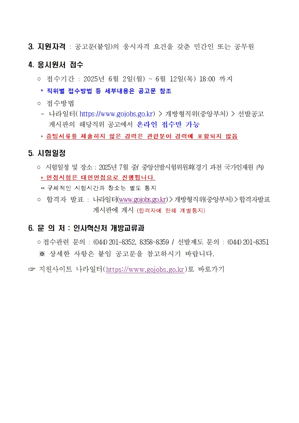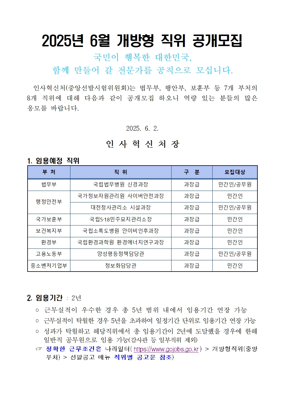 [인사혁신처] 2025년 6월 개방형 직위 공개모집