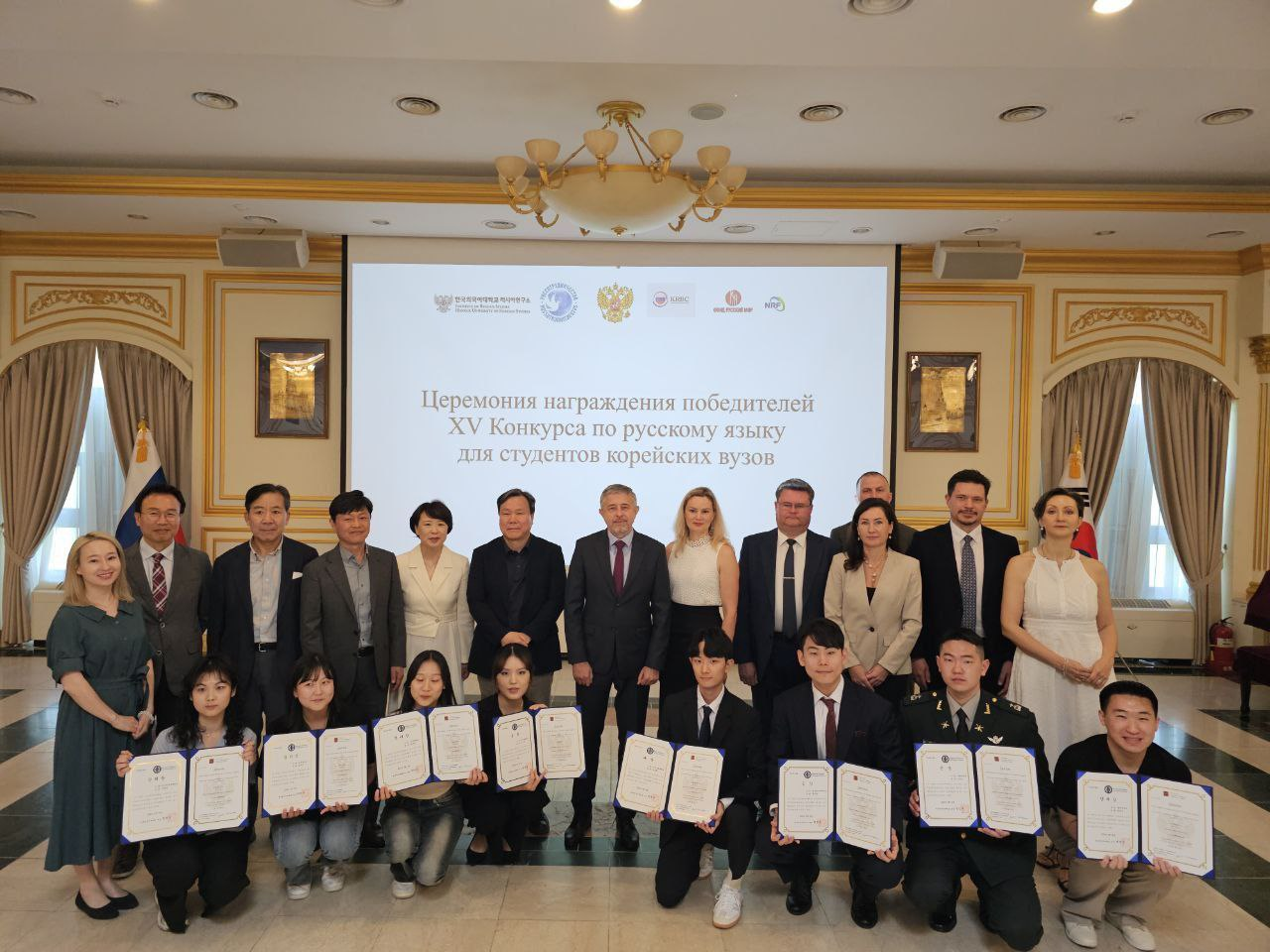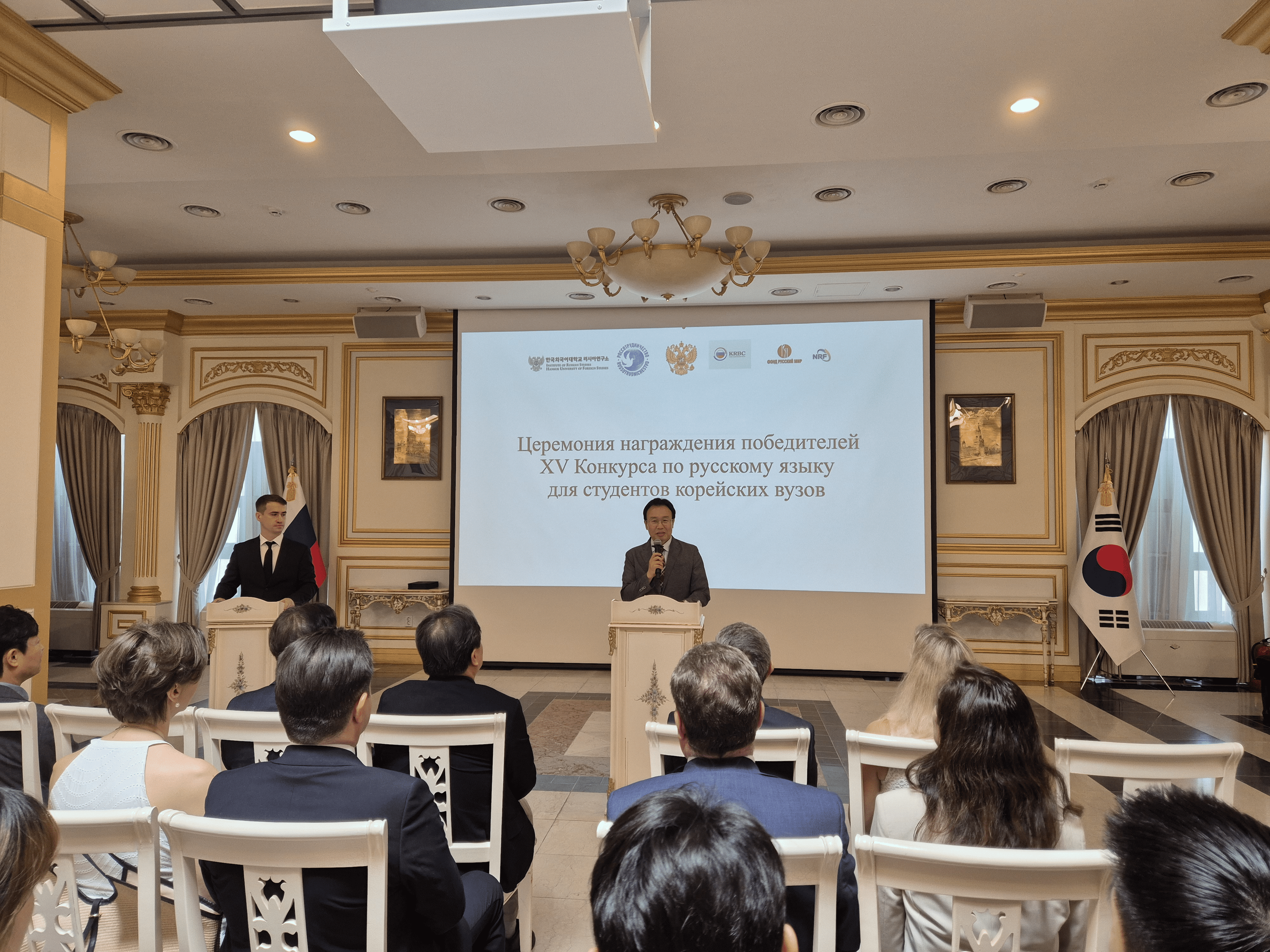 한국외대 러시아연구소(소장 최우익)는 2025년 6월 6일(목) 주한 러시아연방 대사관에서 제15회 전국 대학(원)생 러시아어 토론대회 시상식을 개최했다. 시상식에는 게오르기 지노비예프 주한 러시아연방 대사, 드미트리 굴킨 공사, 알렉산드르 야키모베츠 러시아대외협력청 대표 등 러시아측 인사와 러시아연구소 최우익 소장, 한국외대 김현택 명예교수, KRBC 박종호 대표, 단국대 함영준 교수, 러시아연구소 전미라 HK연구교수 등이 참석했다. 수상자들의 수상을 축하하며, 그간의 노력과 성취를 격려하는 자리로 꾸며졌으며, 시상식과 함께 문화 행사인 러시아 영화 상영회도 함께 개최되었다.