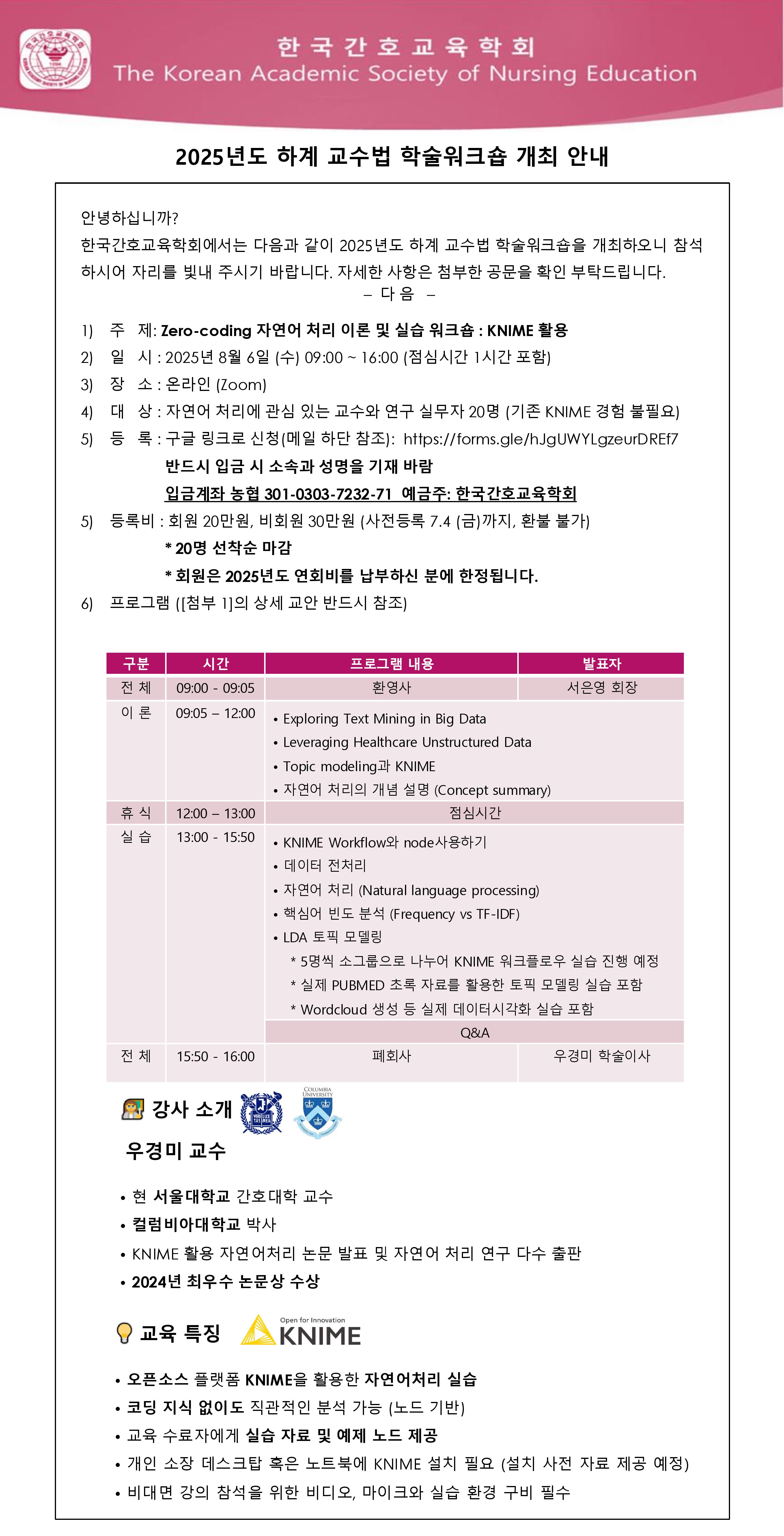 [한국간호교육학회] 2025년도 하계 교수법 학술워크숍 개최 안내