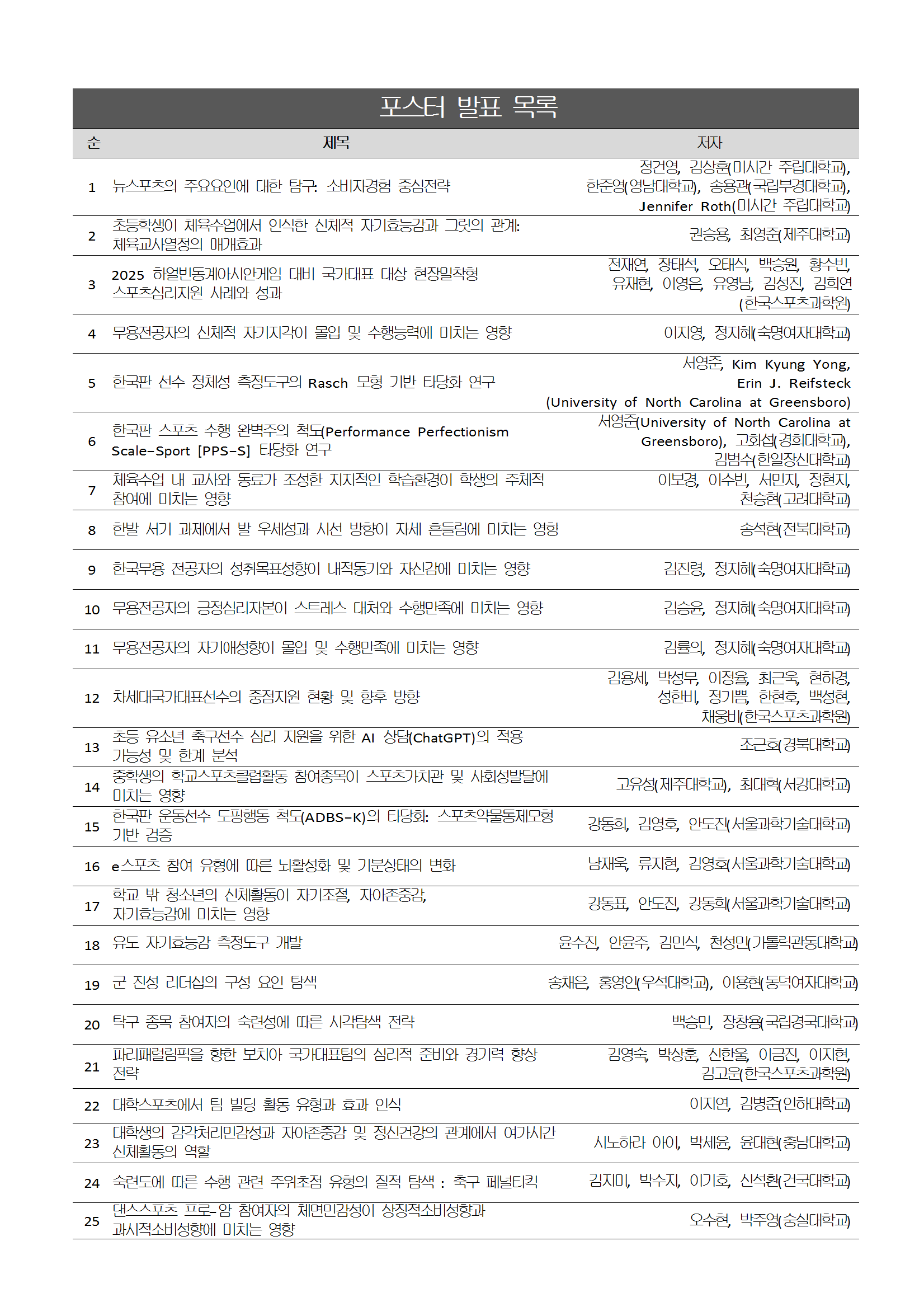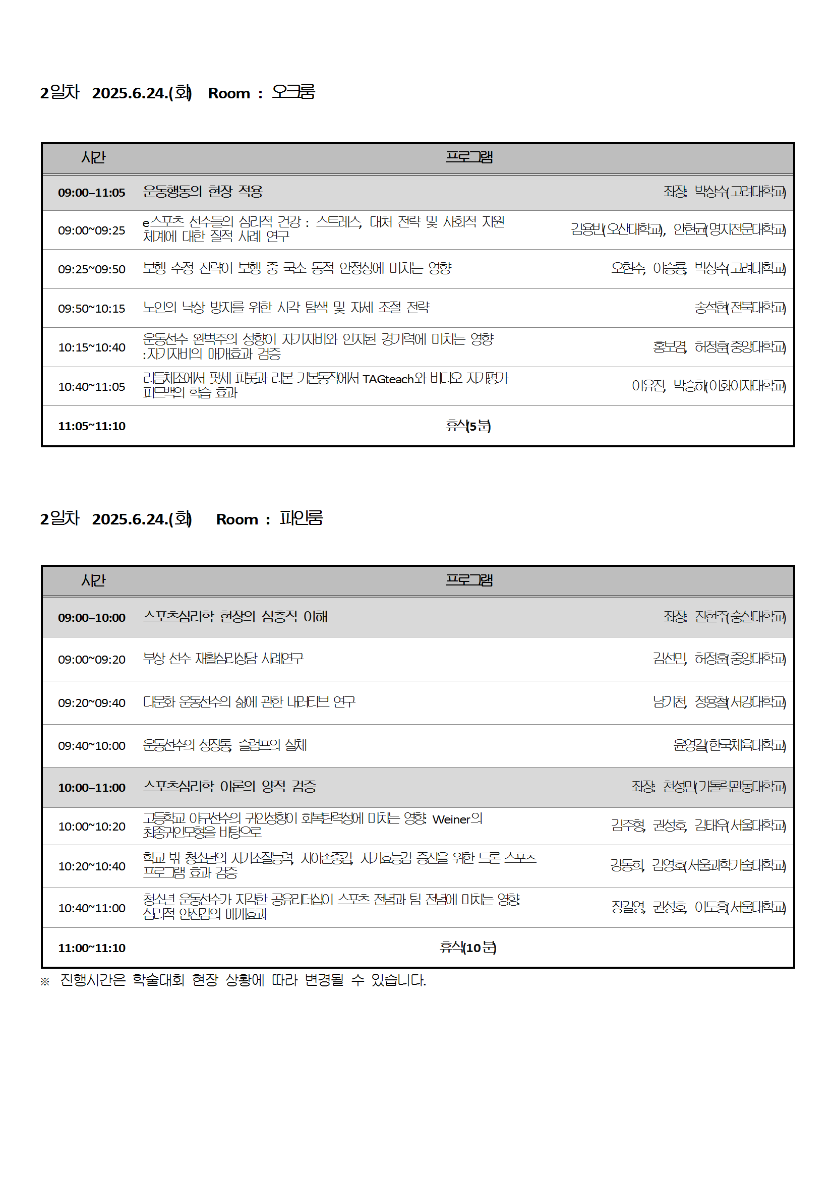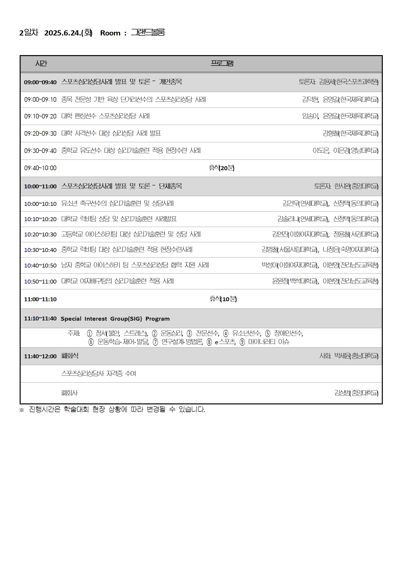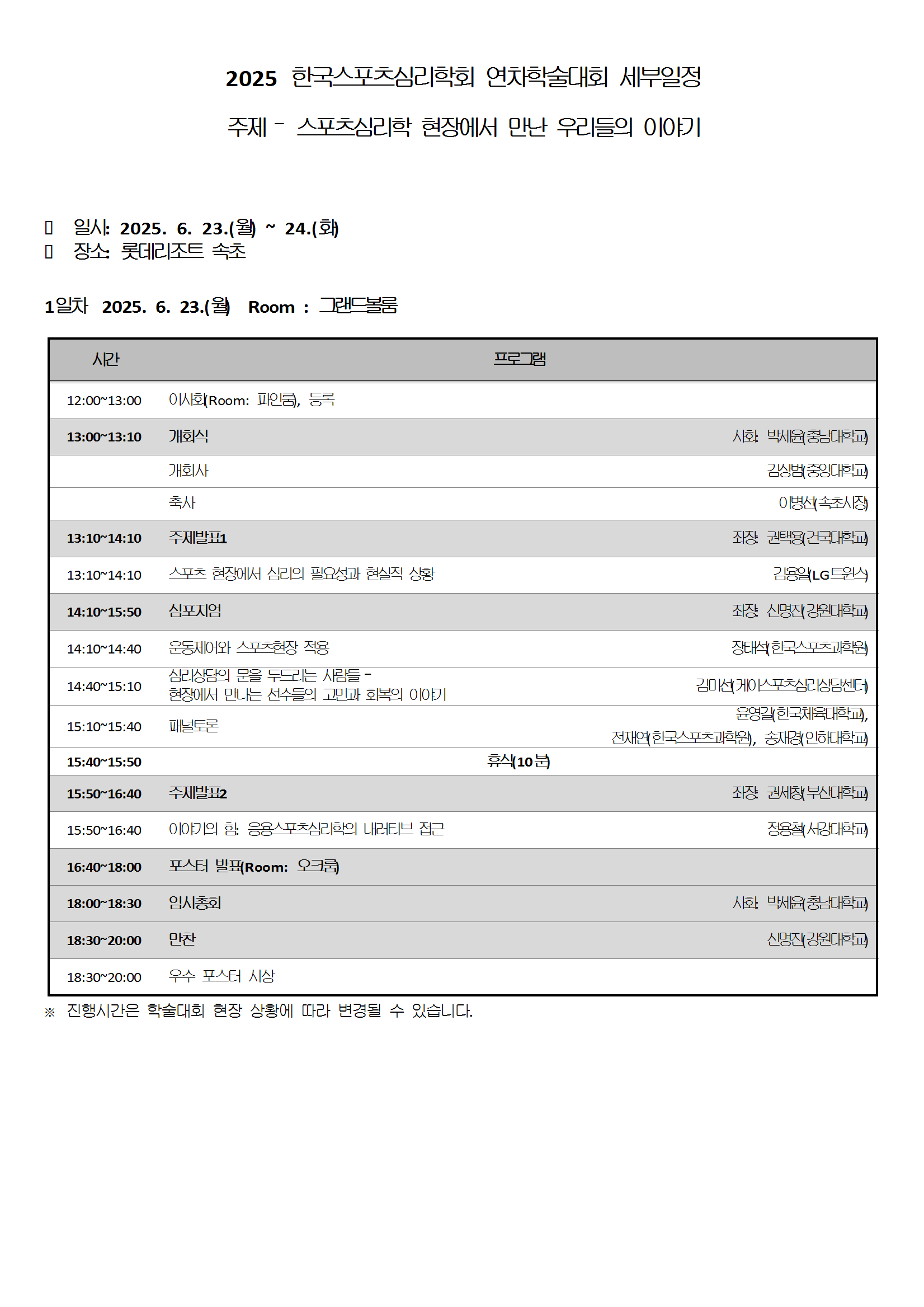 2025년 한국스포츠심리학회 연차학술대회 상세일정표 안내