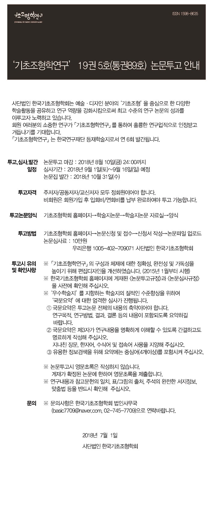 논문투고 마감 | 2018-07-01 ~ 2018-08-10 |