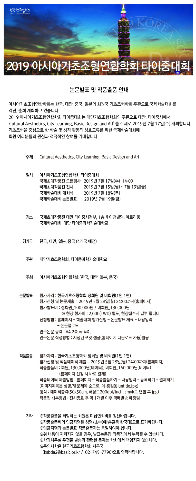2019 아시아기초조형연합학회 타이중대회(2019.7.18)