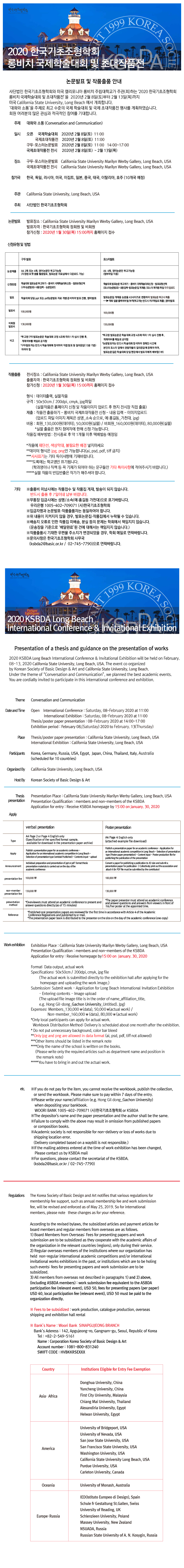 전시회명 | 2020 한국기초조형학회 롱비치 국제학술대회(2020.02.08~2020.02.13) | ||