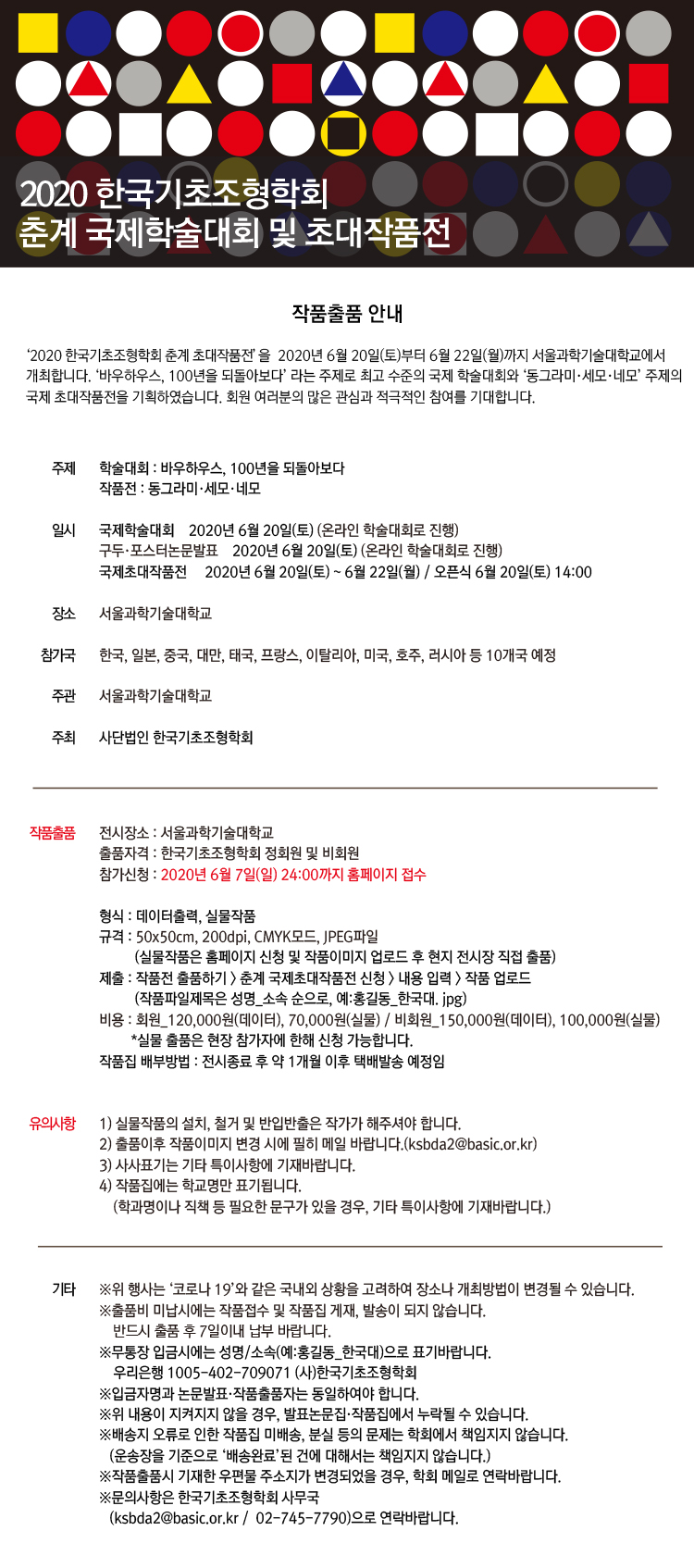 2020 한국기초조형학회 춘계 국제초대작품전(2020.06.20~06.22)