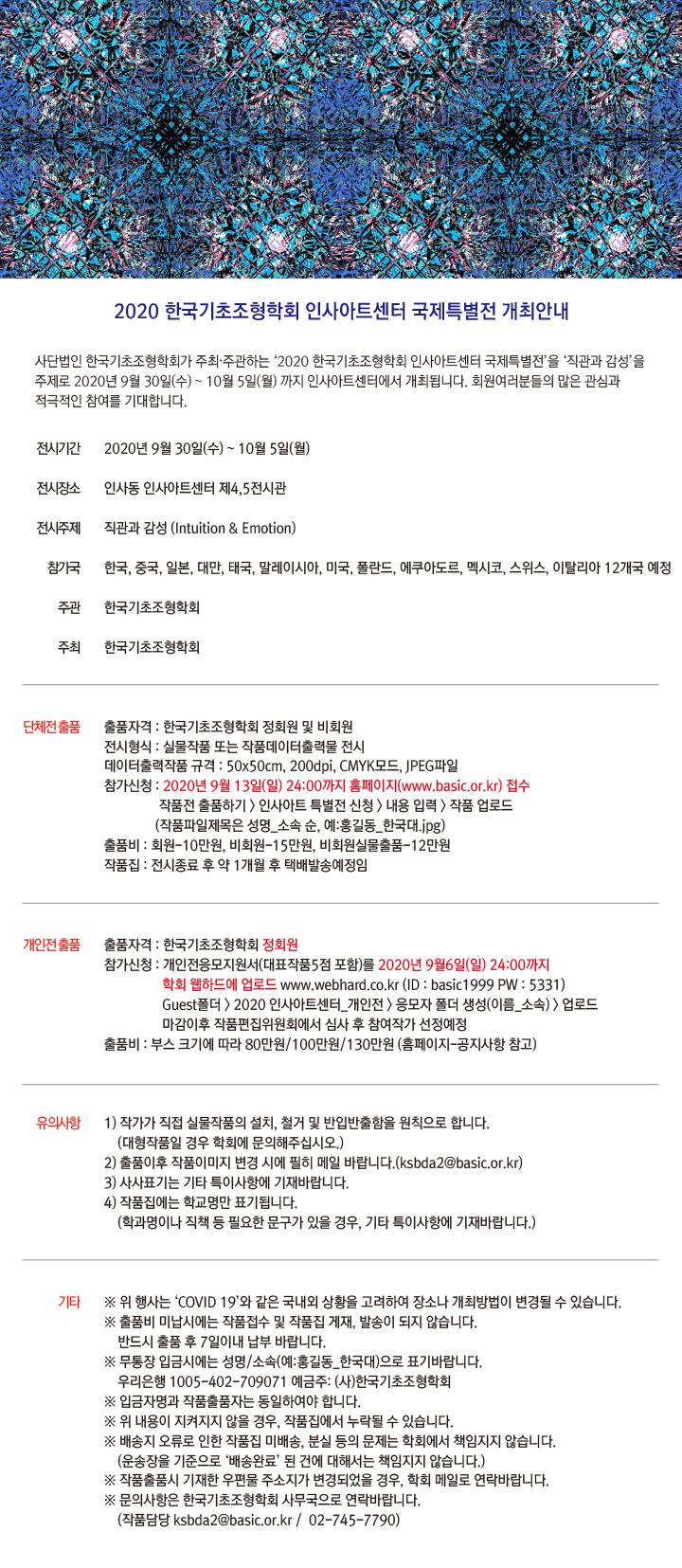 2020 한국기초조형학회 인사아트센터 국제특별전(2020.09.30~10.05)