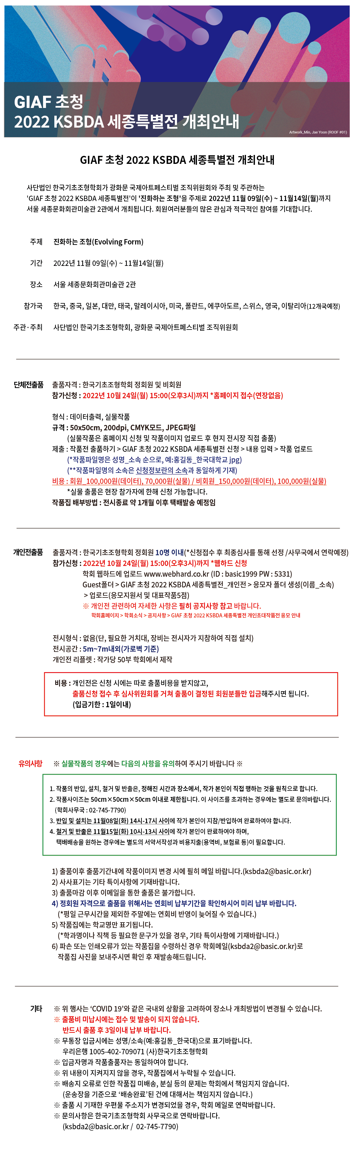 GIAF 초청 2022 KSBDA 세종특별전(2022.11.09~11.14)