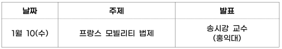 - 참석 범위 : 1. 모빌리티법에 관심 있는 규제법학회 회원, 2. 사전 신청 회원