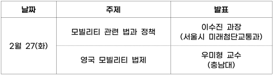 - 참석 범위 : 1. 모빌리티법에 관심 있는 규제법학회 회원, 2. 사전 신청 회원