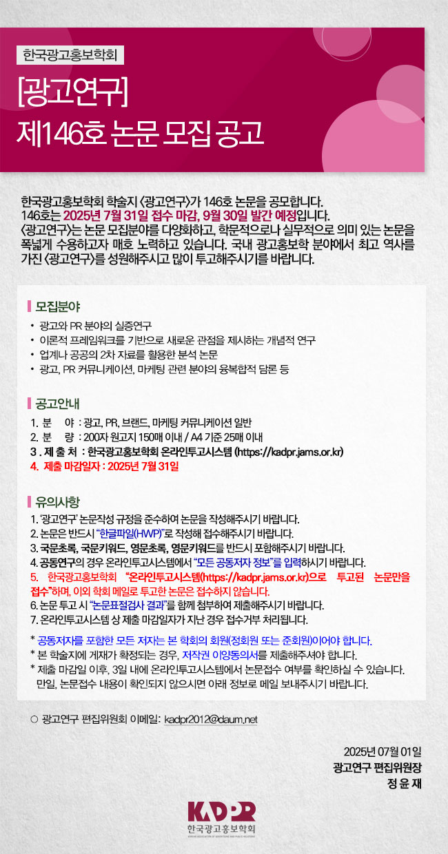 [KADPR] 광고연구 제146호 논문 모집 공고