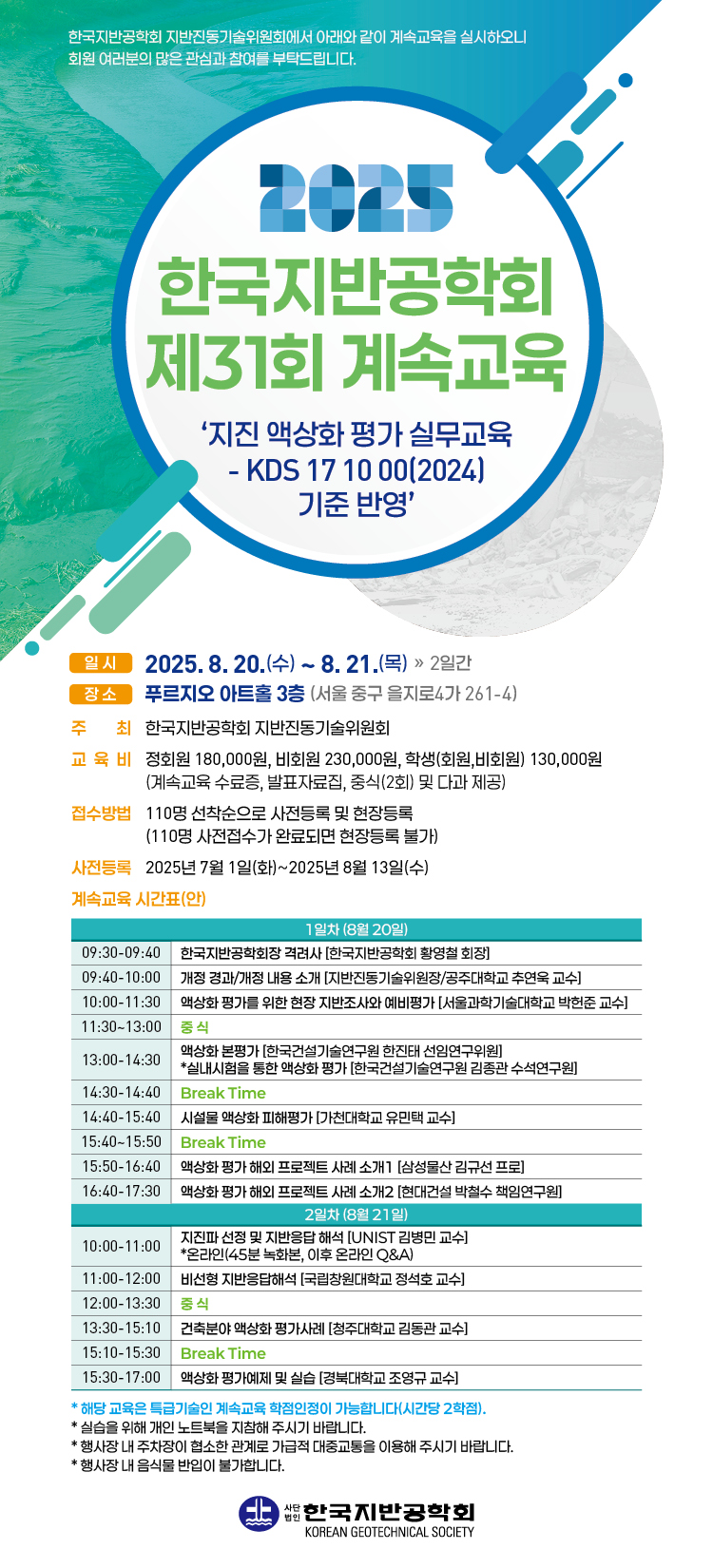 □ 주 제 : 지진 액상화 평가 실무교육 - KDS 17 10 00(2024) 기준 반영
