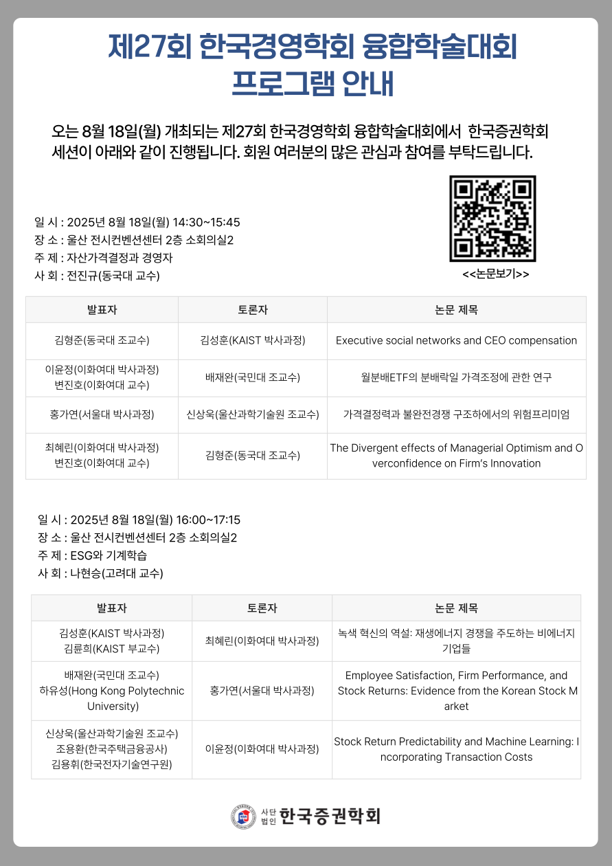 제27회 한국경영학회 융합학술대회 프로그램 안내(8월18일)
