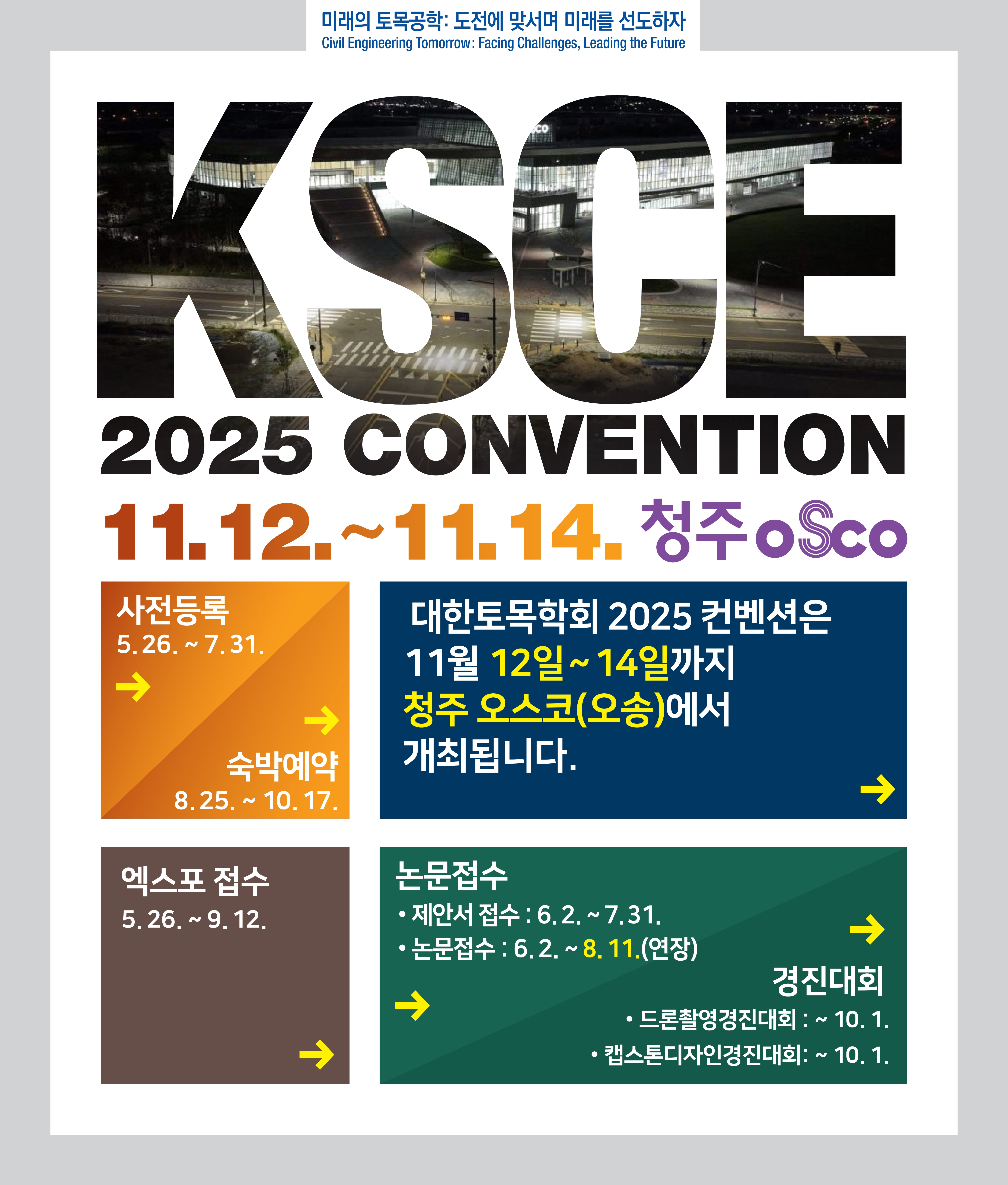 대한토목학회에서 개최하는 11월 컨벤션의 논문접수 기한이 연장되었습니다.