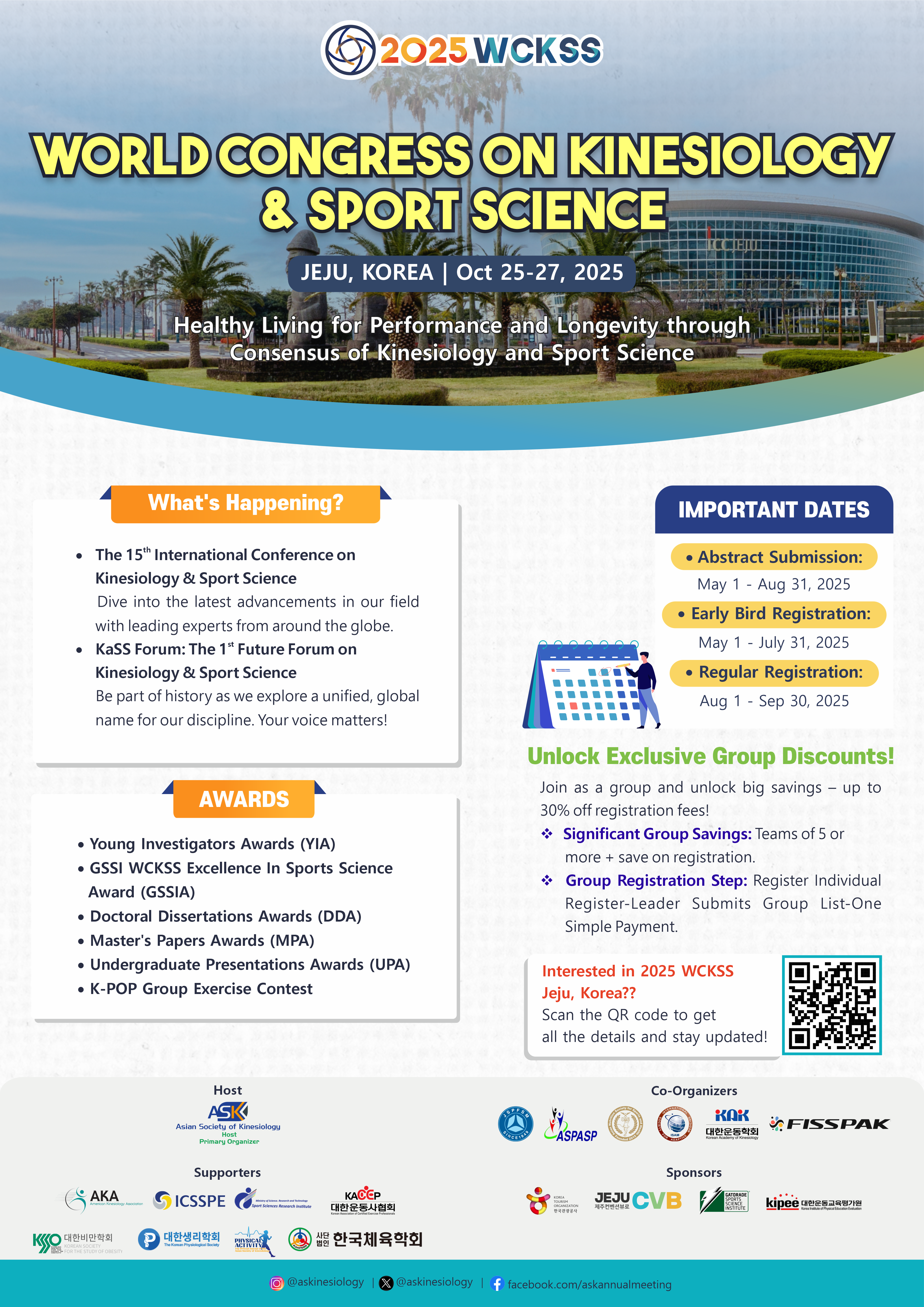 - 제 26회 운동사 대회, 2025 전 세계 운동학 및 스포츠과학 연합 학술대회