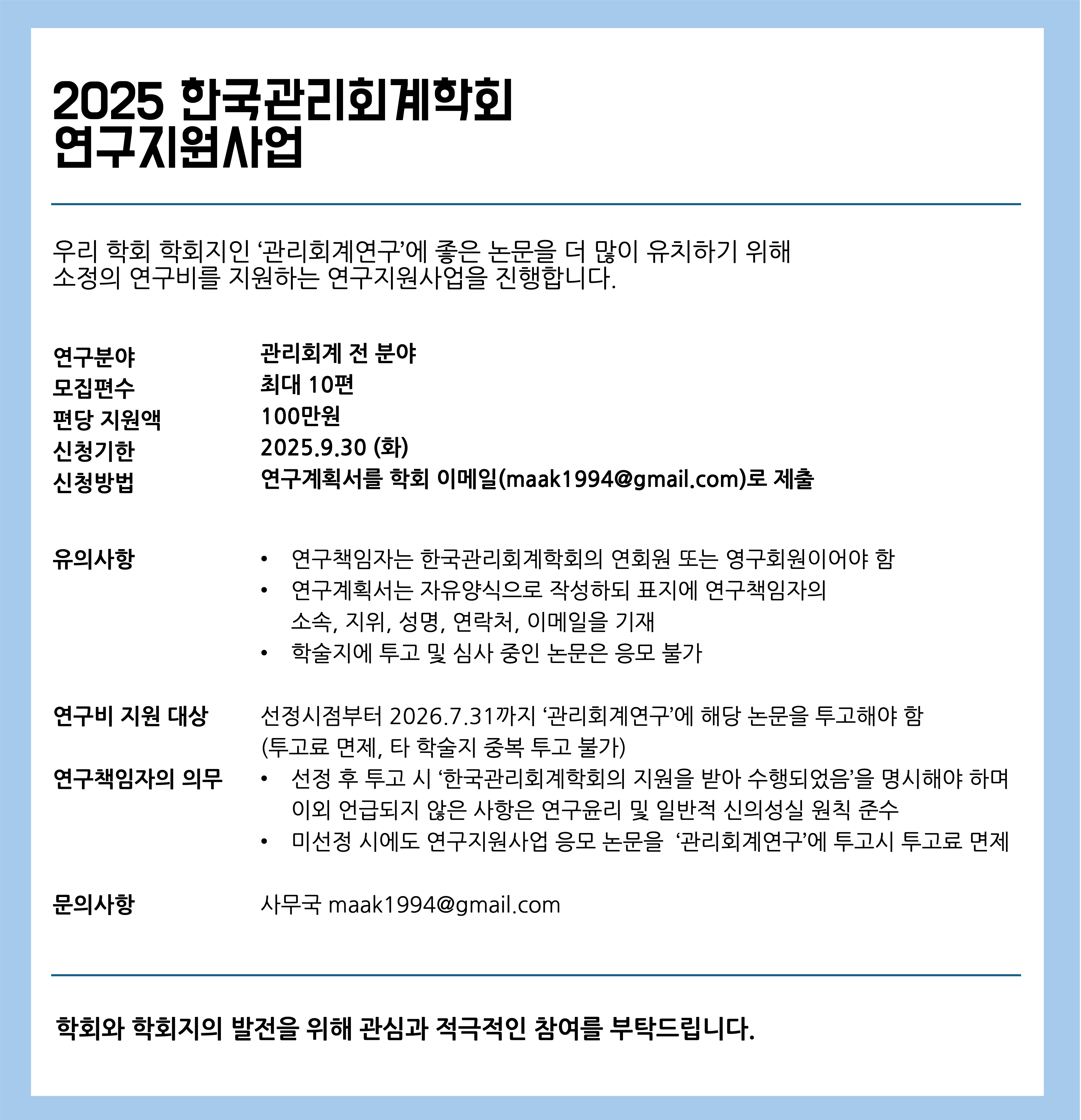 2025 관리회계연구 연구지원사업