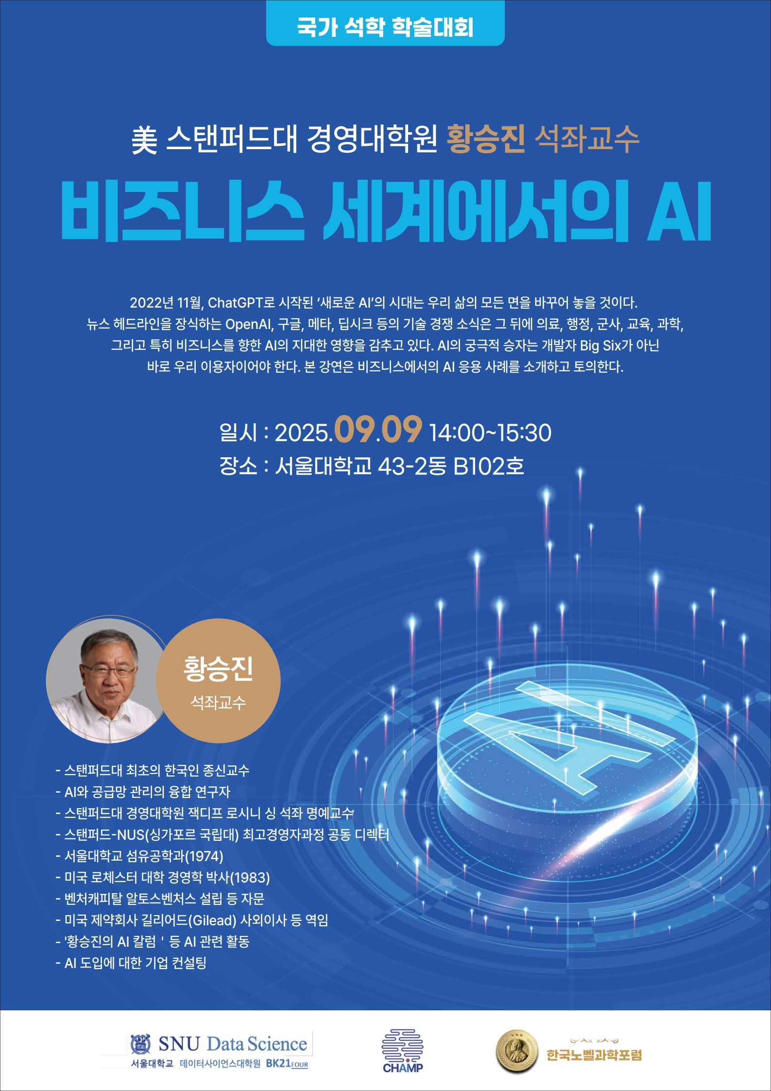 美 스탠퍼드대 경영대학원 황승진 석좌교수 강연 안내