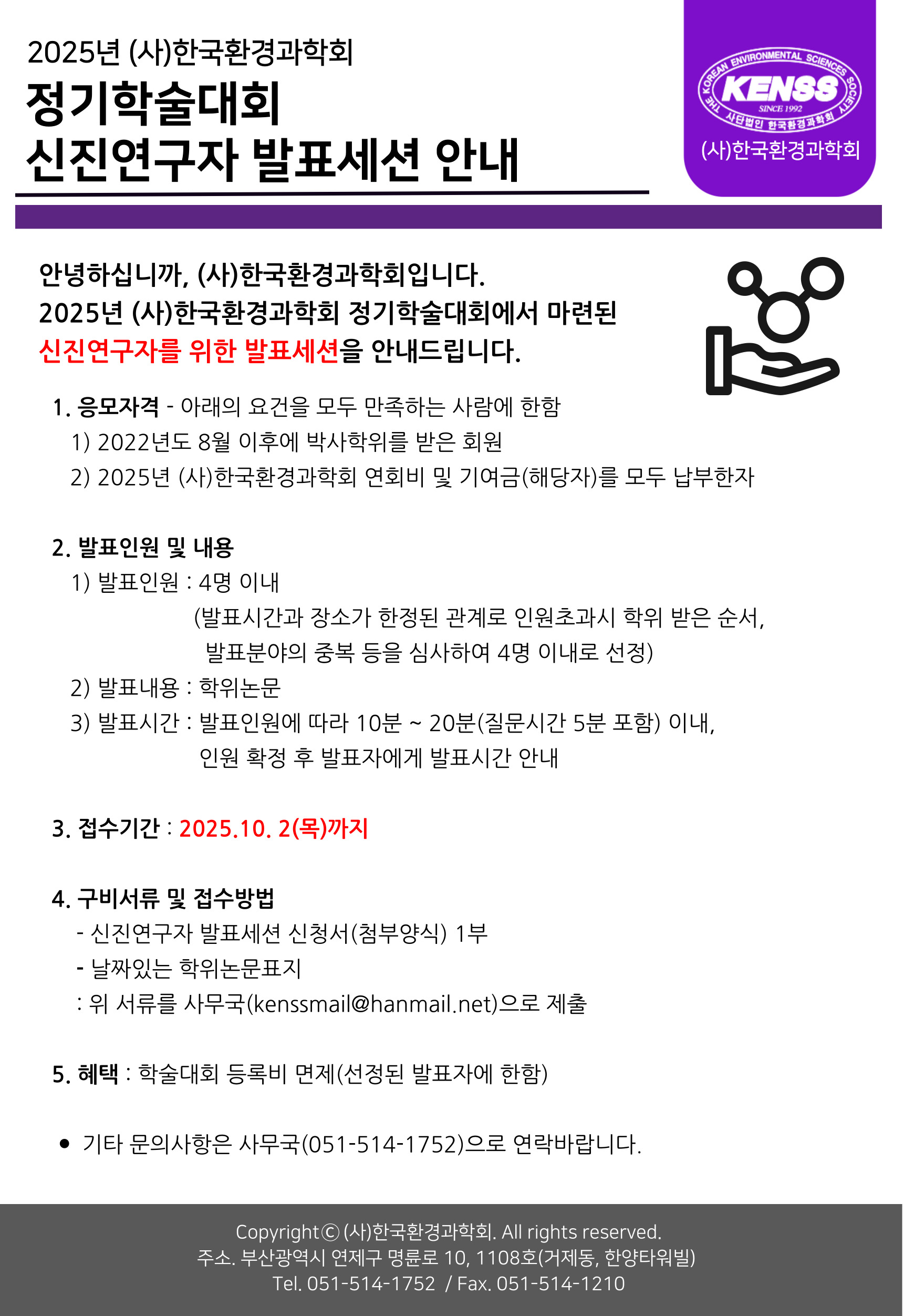 2025년 정기학술대회 <신진연구자 발표세션> 접수안내