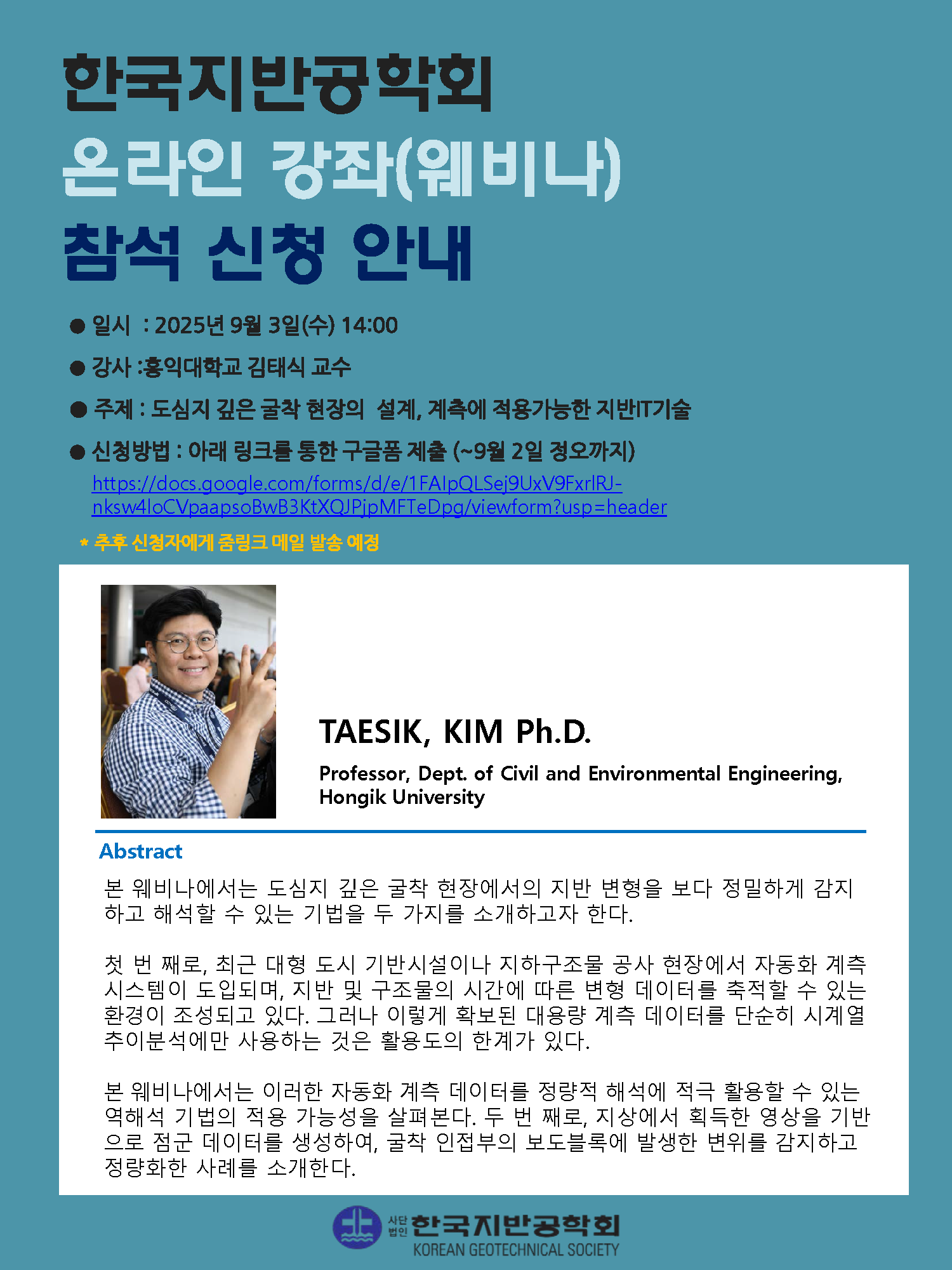 온라인 강좌(웨비나)에 참석을 희망하시는 학회 회원분께서는 아래 바로가기 링크에 정보를 입력하여
