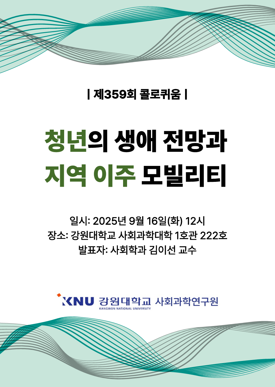 사회과학연구원에서는 다음과 같이 제359회 콜로퀴움을 개최하오니,