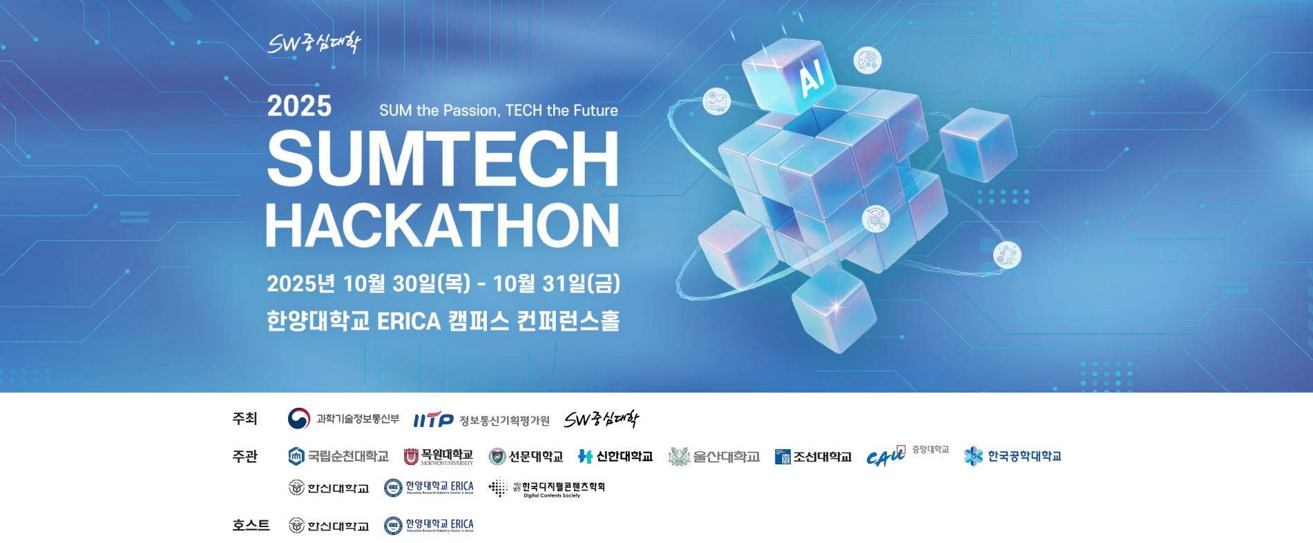 2025년도 SW중심대학사업 10개대학연합 SUMTECH 해커톤 대회가 다음과 같이 개최됩니다.
