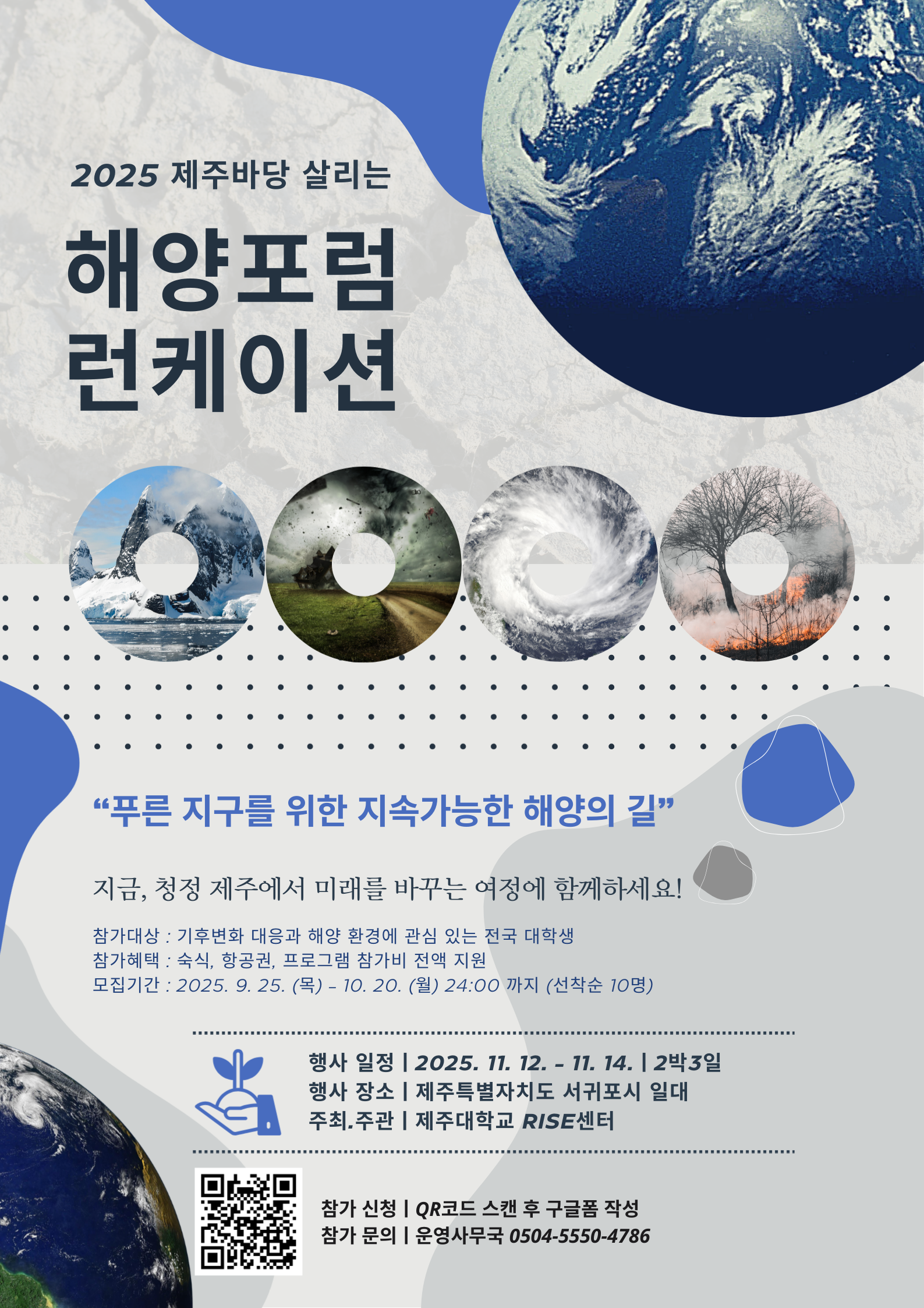 [제주대학교 RISE센터](대학생 대상)2025 제주바당 살리는 해양포럼 런케이션