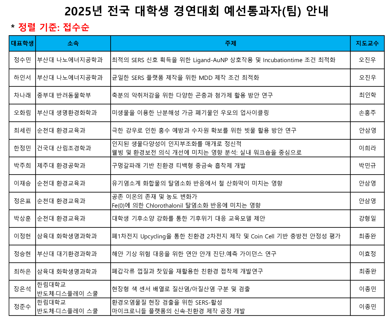 [예선결과발표] 2025년 다양한 환경문제 개선을 위한 전국 대학생 경연대회