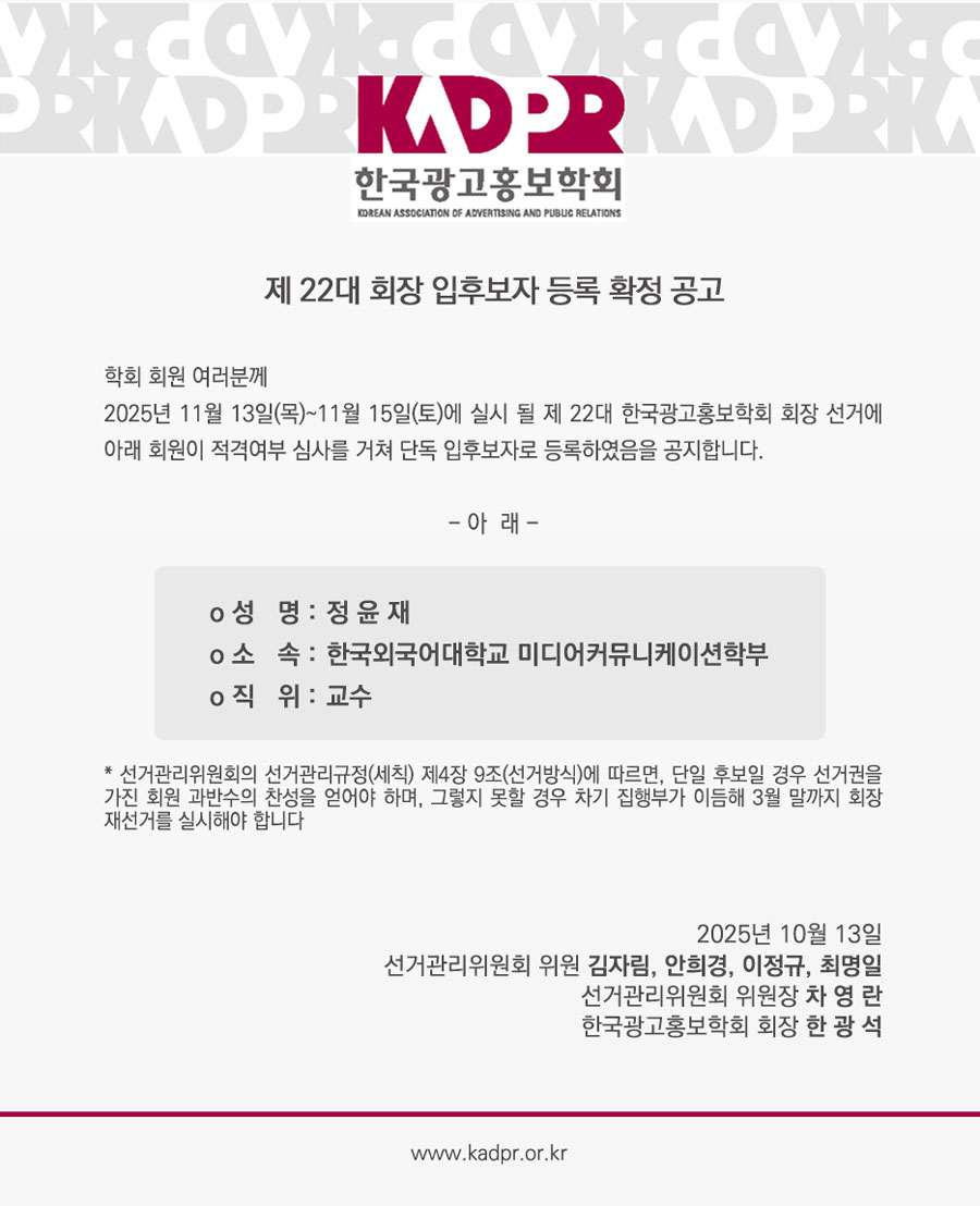 [KADPR] 제 22대 회장 입후보자 등록 확정 공고