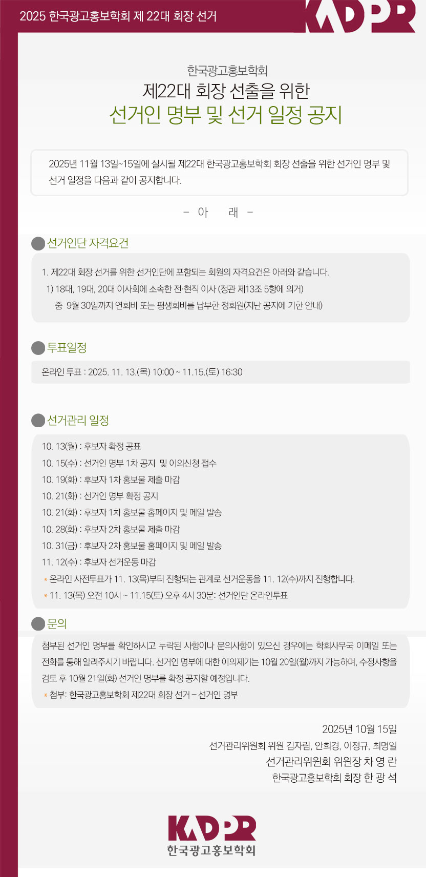 [KADPR] 제22대 회장 선출을 위한 선거인 명부 및 선거 일정 공지
