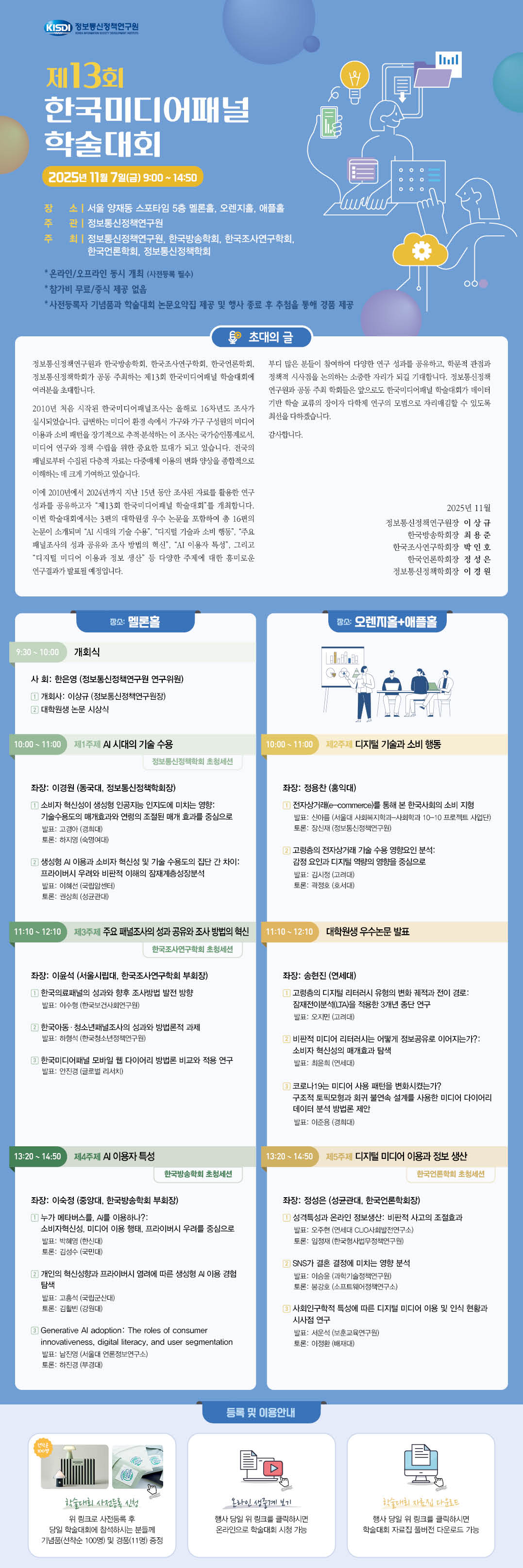 [정보통신정책연구원] 제13회 한국미디어패널 학술대회 안내