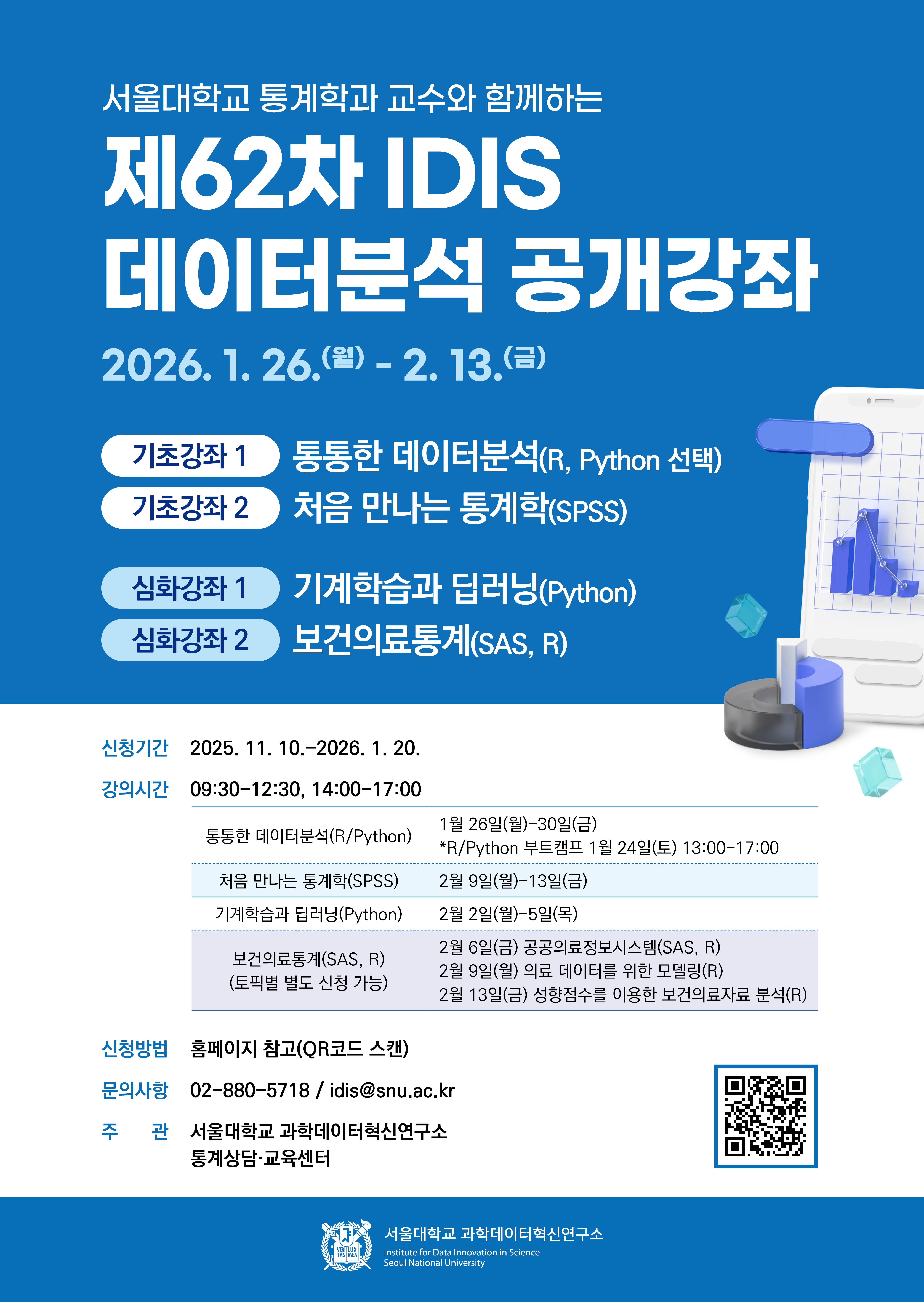 서울대학교 과학데이터혁신연구소(통계상담 교육센터)에서는 2026년 겨울,