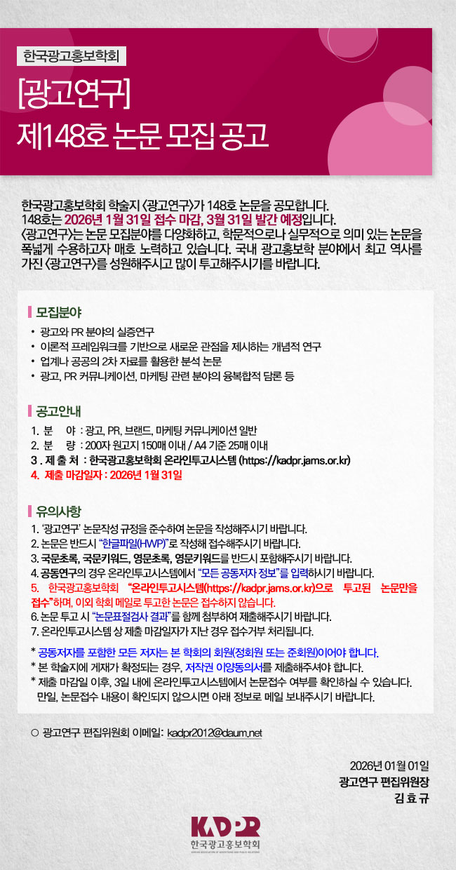 [KADPR] 광고연구 제148호 논문 모집 공고