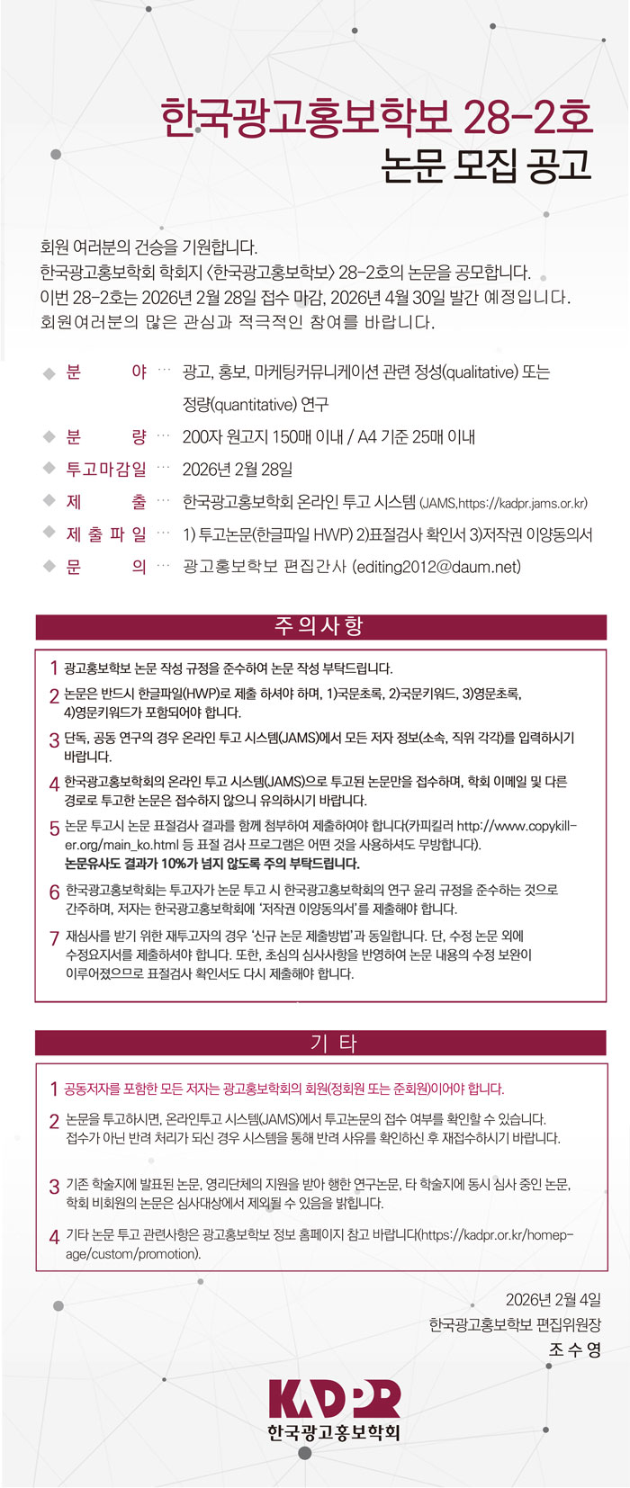 [KADPR]한국광고홍보학보 28-2호 논문 모집 공고