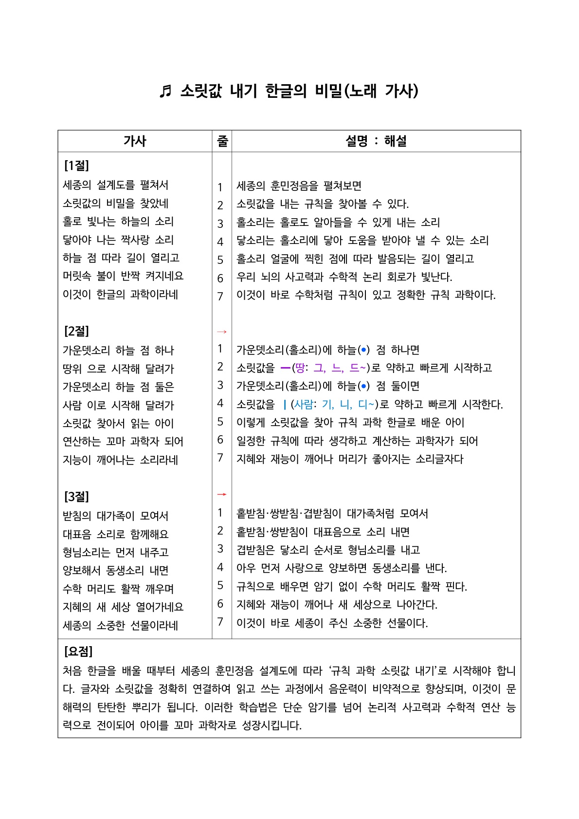 •♬소릿값 내기 한글의 비밀(노래 음원듣기)