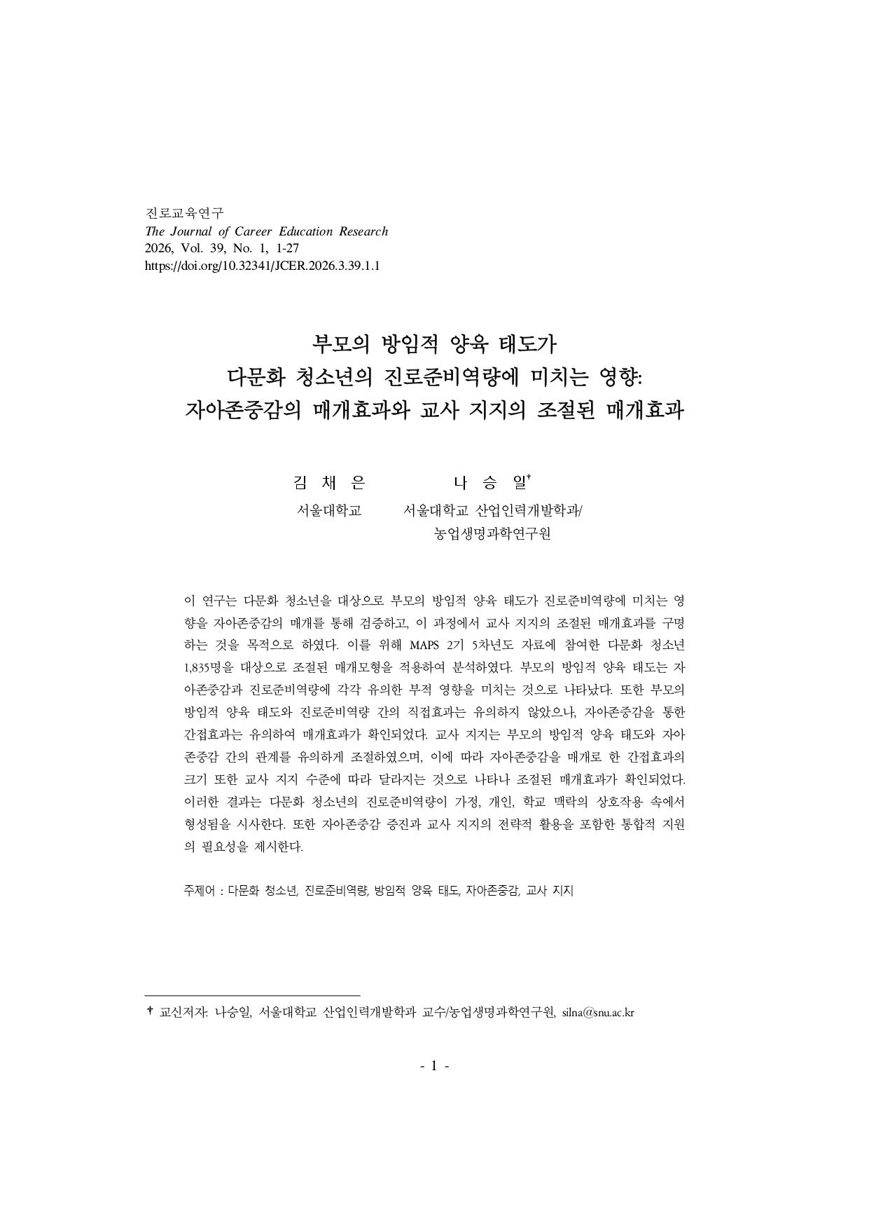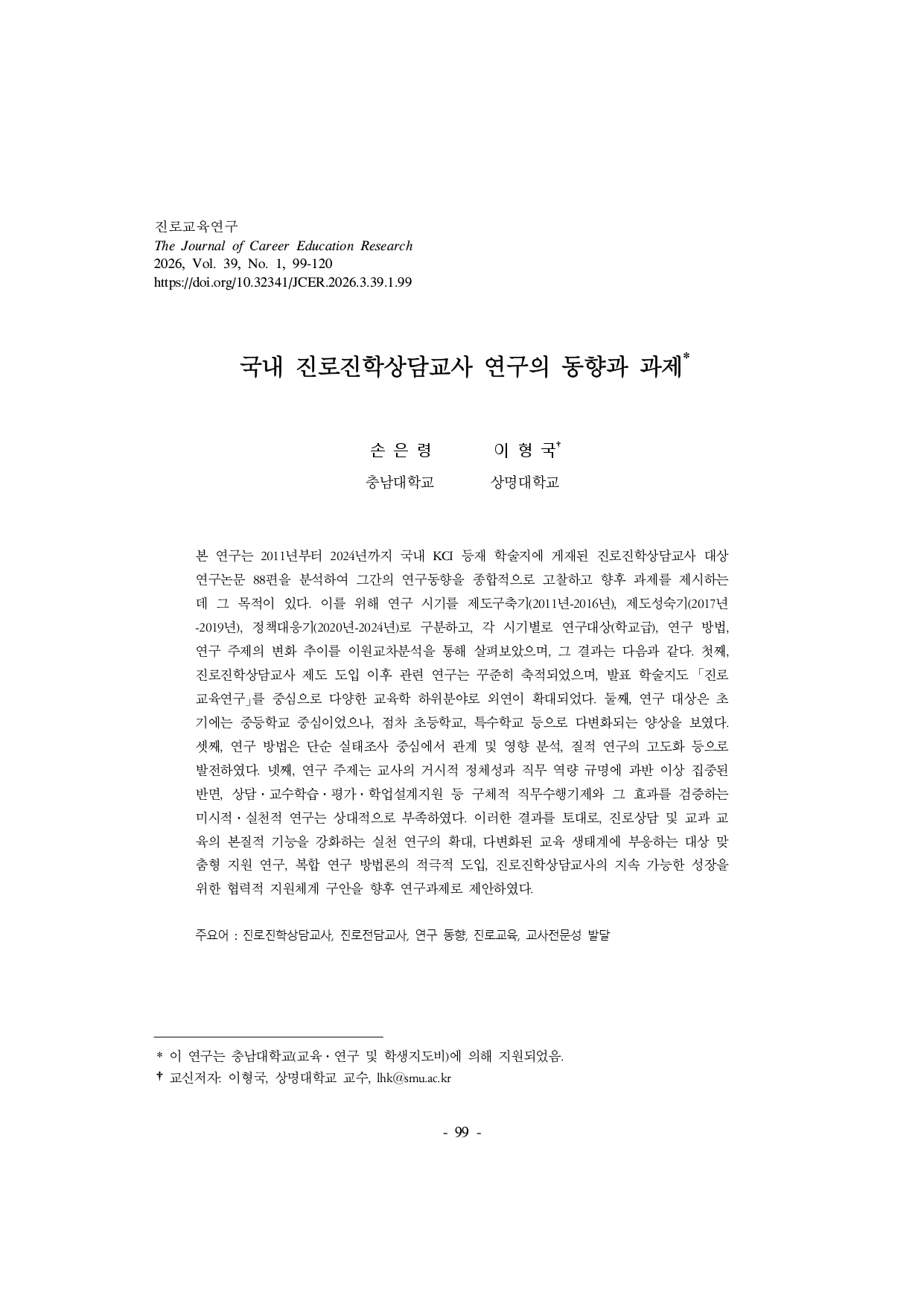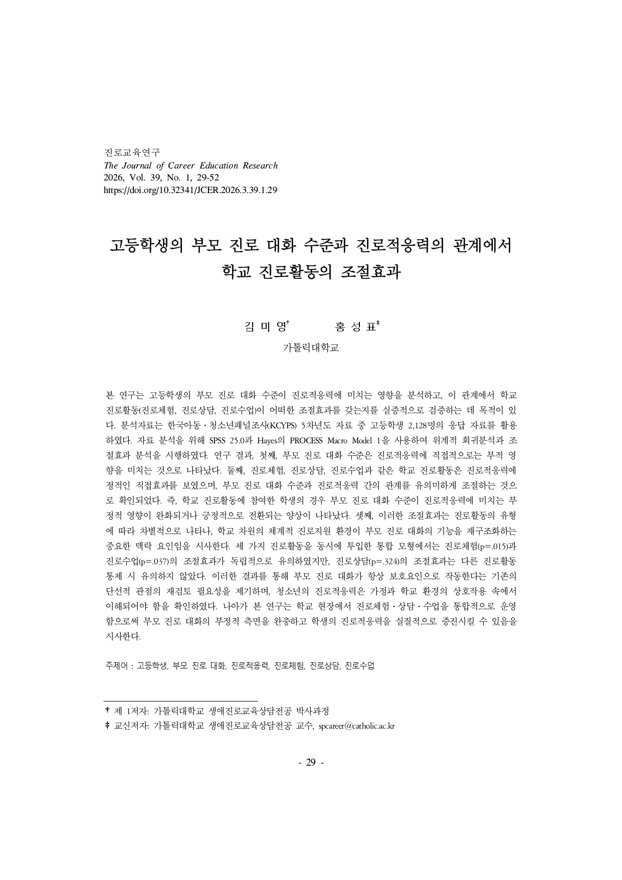 [뉴스레터 vol. 007] 학술지 연구성과 요약: 진로교육연구 제39권 1호