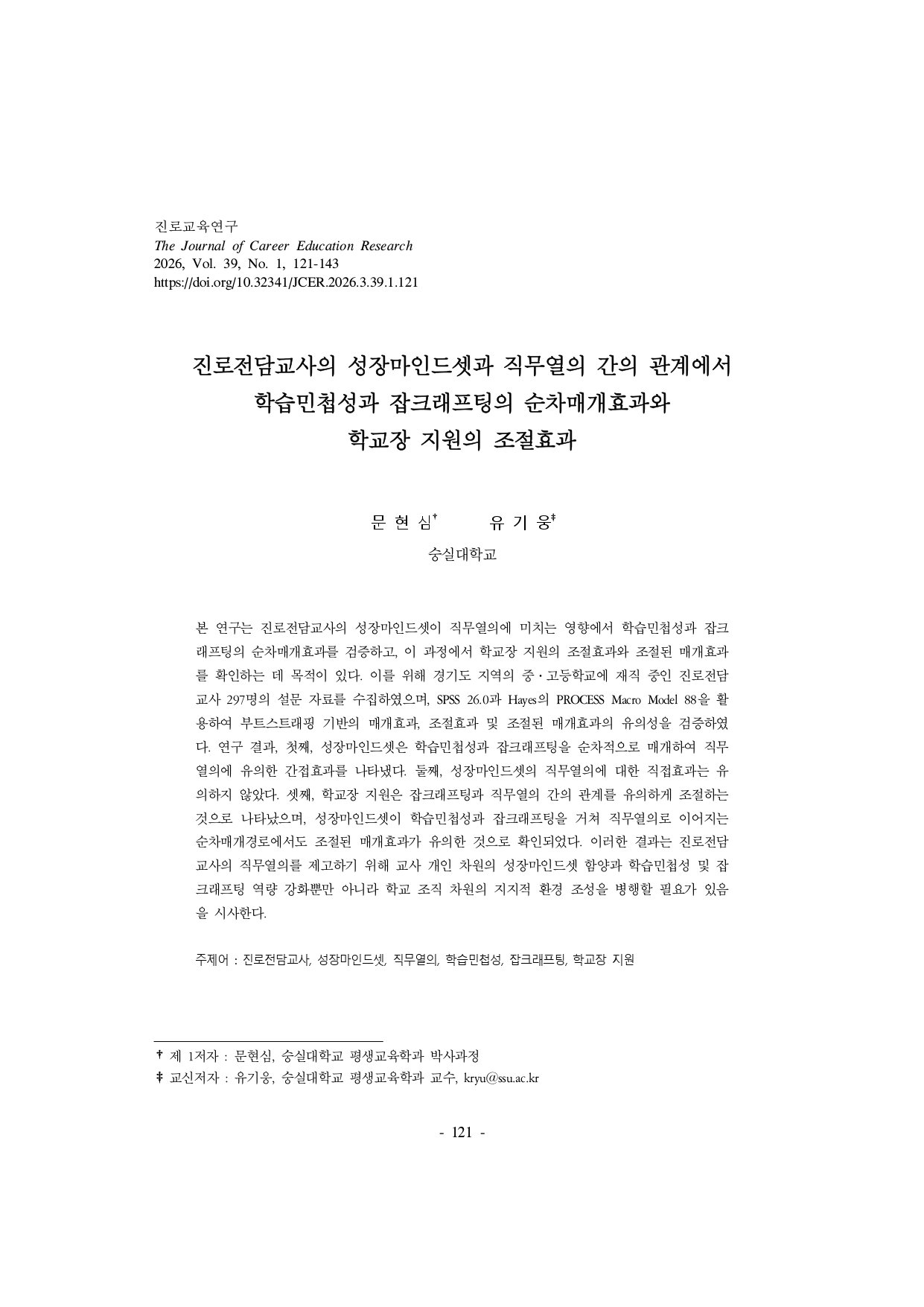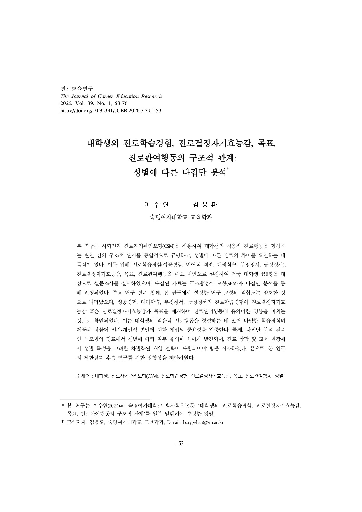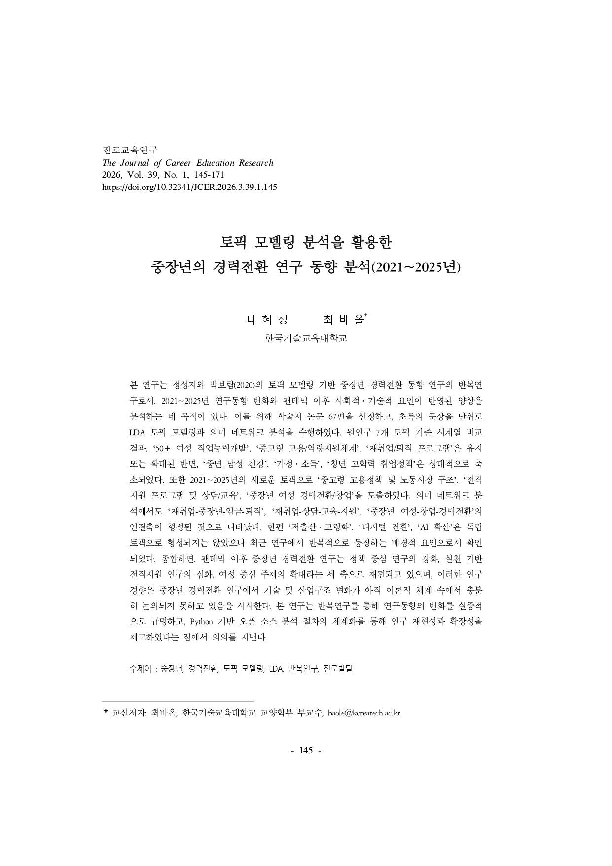 [뉴스레터 vol. 007] 학술지 연구성과 요약: 진로교육연구 제39권 1호