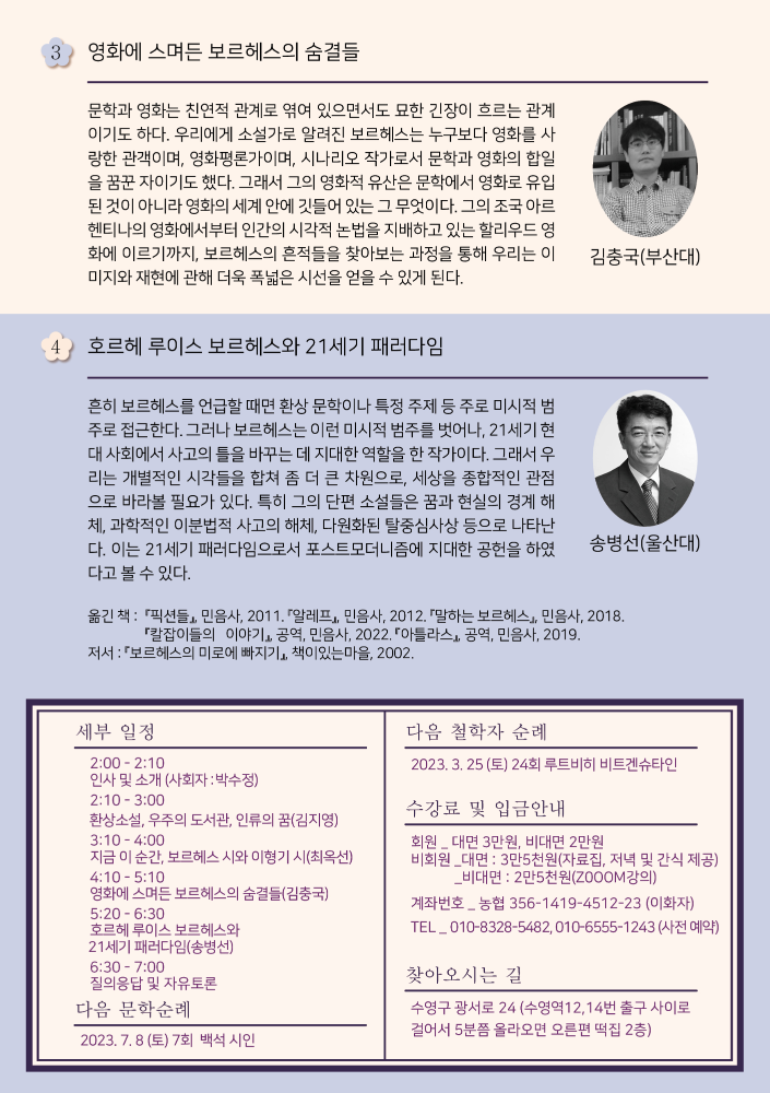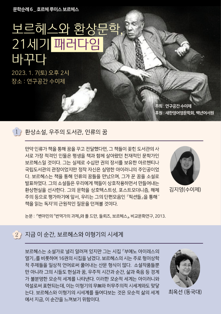 - 주제: 보르헤스와 환상문학, 21세기 패러다임 바꾸다
