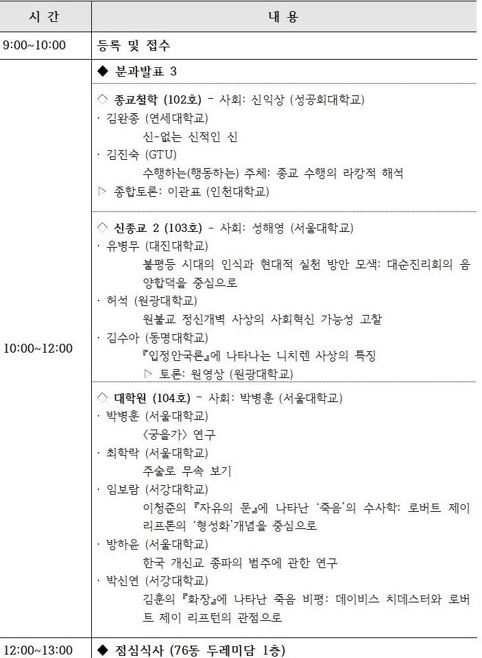 ○ 주관: 한국종교학회 · 서울대학교 종교문제연구소